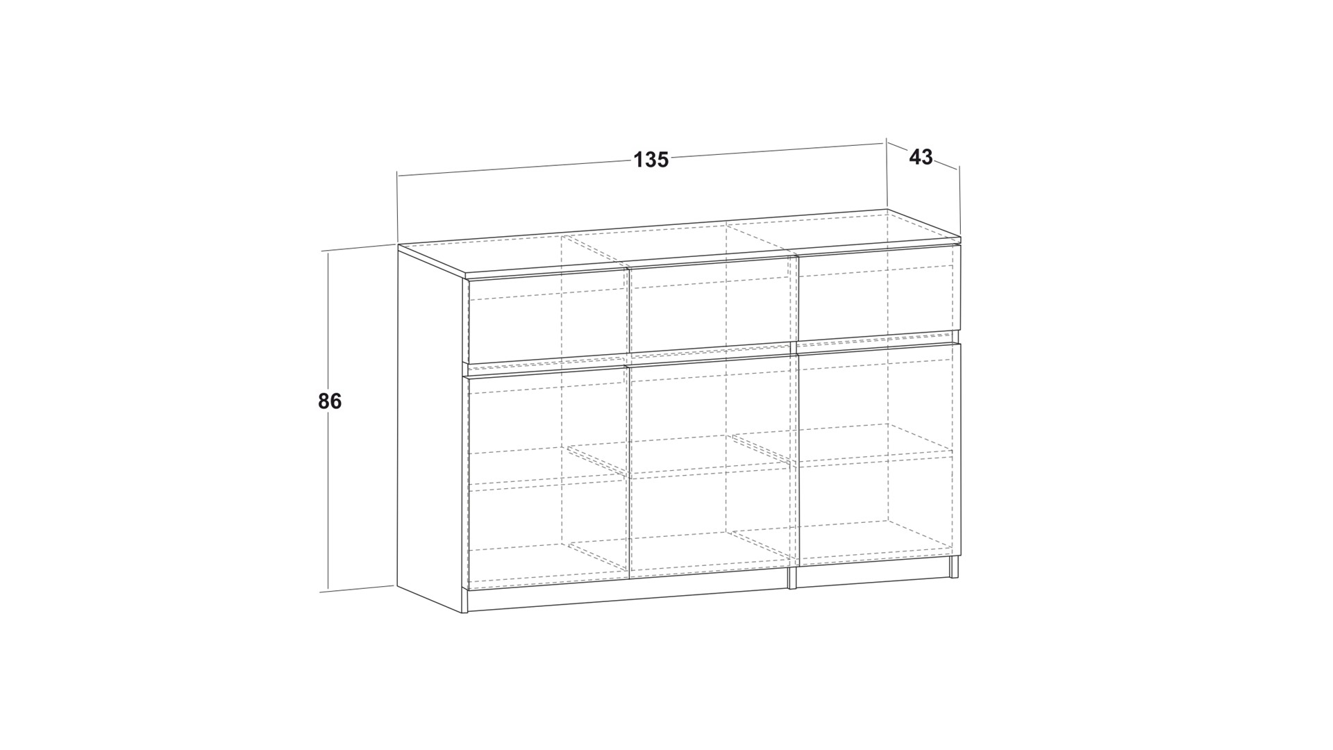 Д: 135 см Ш: 43 см В: 86 см