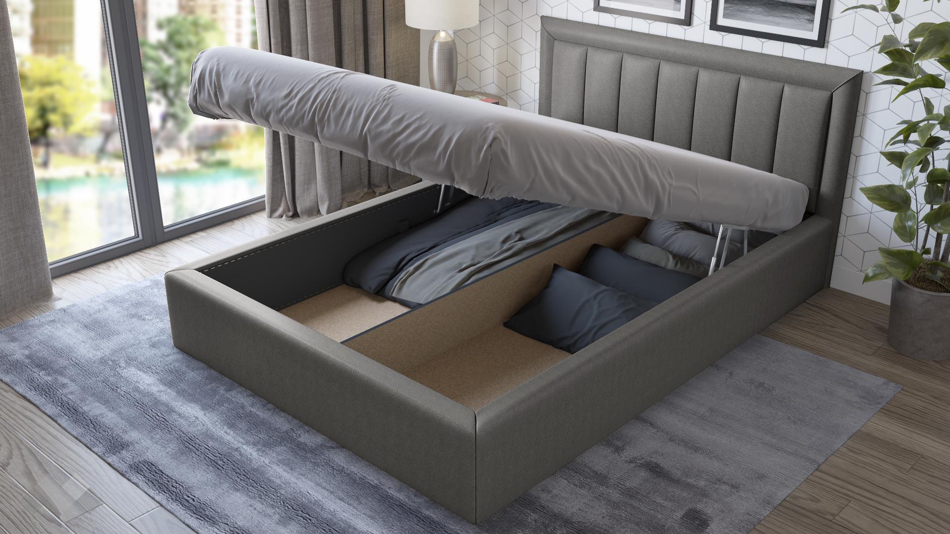 Тапицирана спалня Бори е с идеалните размери – подходяща е за матрак с размер 140/200 см. С повдигането на матрака пък се открива широко пространство, готово да побере всички възглавници и завивки, на които все не се намира място. Допълнителният делител на подматрачното пространство прави организацията на вещите още по-лесна.