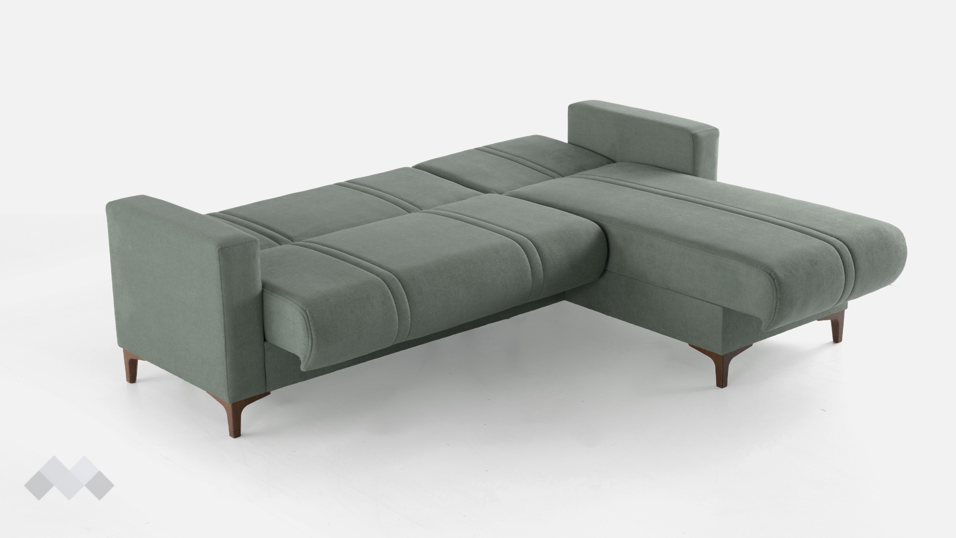 Този модел разполага с клик-клак механизъм за лесно преобразуване в легло - 115/187 см., отличен избор както за дневна употреба, така и за нощен сън, предоставяйки комфорт и практичност. Още един плюс е раклата - практичното решение за поддържане на ред и организираност в дома, като същевременно не се губи функционалността на дивана като мебел за сядане и отдих. Внимателно подбраните цветови нюанси придават на ъглов диван Браво различен характер и настроение, позволявайки ти да избереш най-подходящият вариант за твоя интериор.