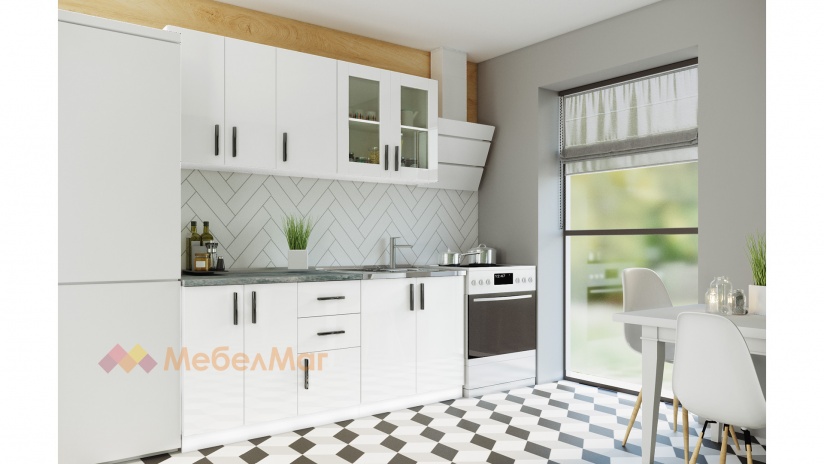 Кухня Бриана ти предлага всичко най-необходимо за кухнята. Долният ред е съставен от шкаф за мивка, две чекмеджета и малък шкаф с вратичка, както и допълнителен двоен шкаф. Горният ред разполага с шкаф с две врати, един двоен шкаф с остъклени вратички и един единичен шкаф. За твое допълнително удобство всички вратички са снабдени с механизъм за плавно затваряне, което е чудесна екстра при ежедневно ползване.