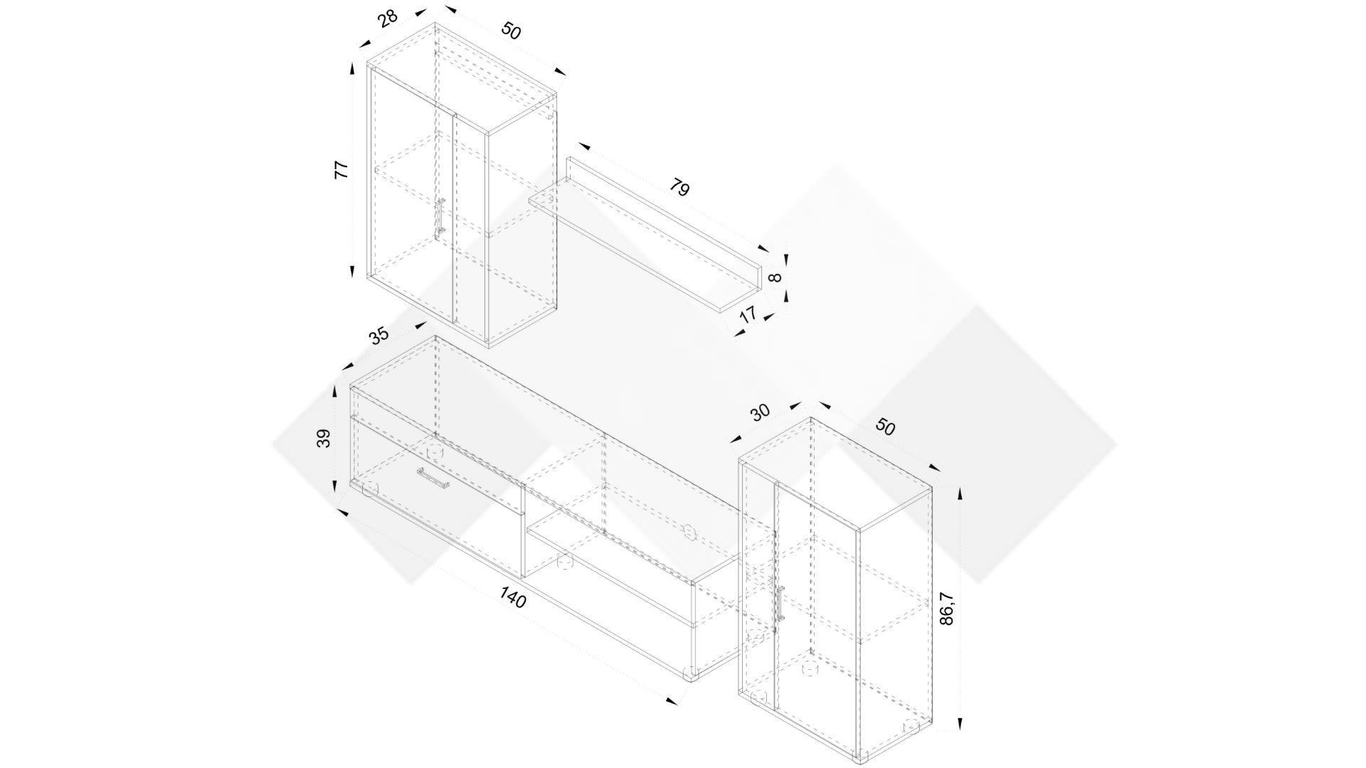 ТВ шкаф: Д: 140 см Ш: 35 см В: 39 см