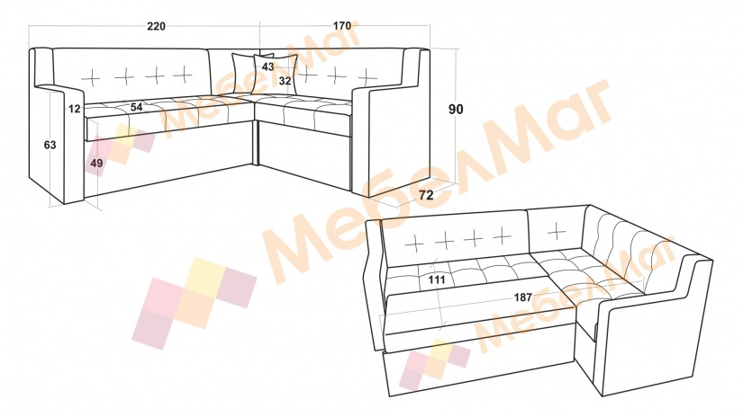 Седящата част е с подходяща височина и опора, за да можеш да се настаниш удобно до кухненската маса. Моделът е със стабилна основа за устойчивост и дълъг срок на употреба, а щом ти потрябва допълнително легло, той се превръща в уютно място за отдих с размери 111/187 см посредством подматрак.