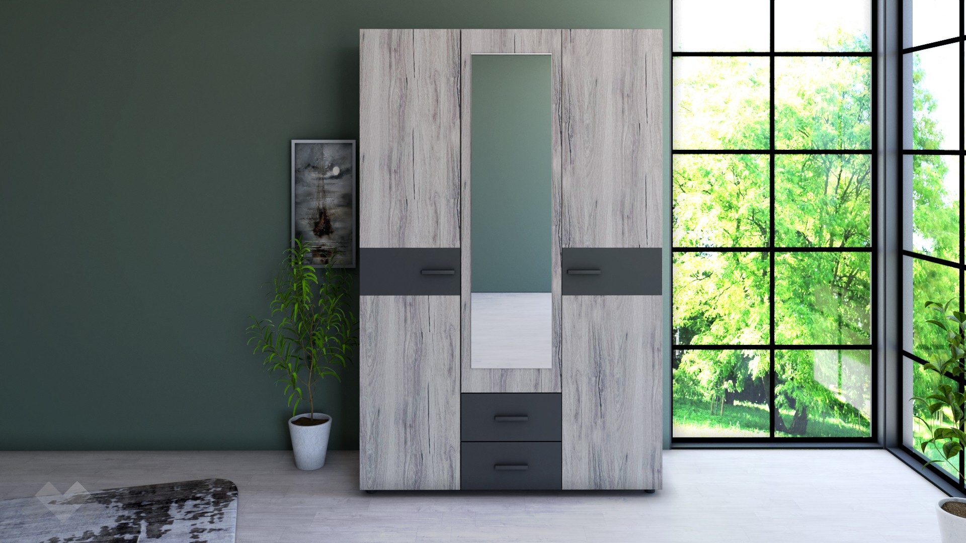 Гардероб Дани съчетава всички тези аспекти на модерен и семпъл дизайн, качество и комфорт. Разпределението на гардероба е отлично – предлага ти крило с 3 рафта за дрехите, които съхраняваш сгънати, лост за закачалки и две чекмеджета, подходящи за бельо или аксесоарите ти.