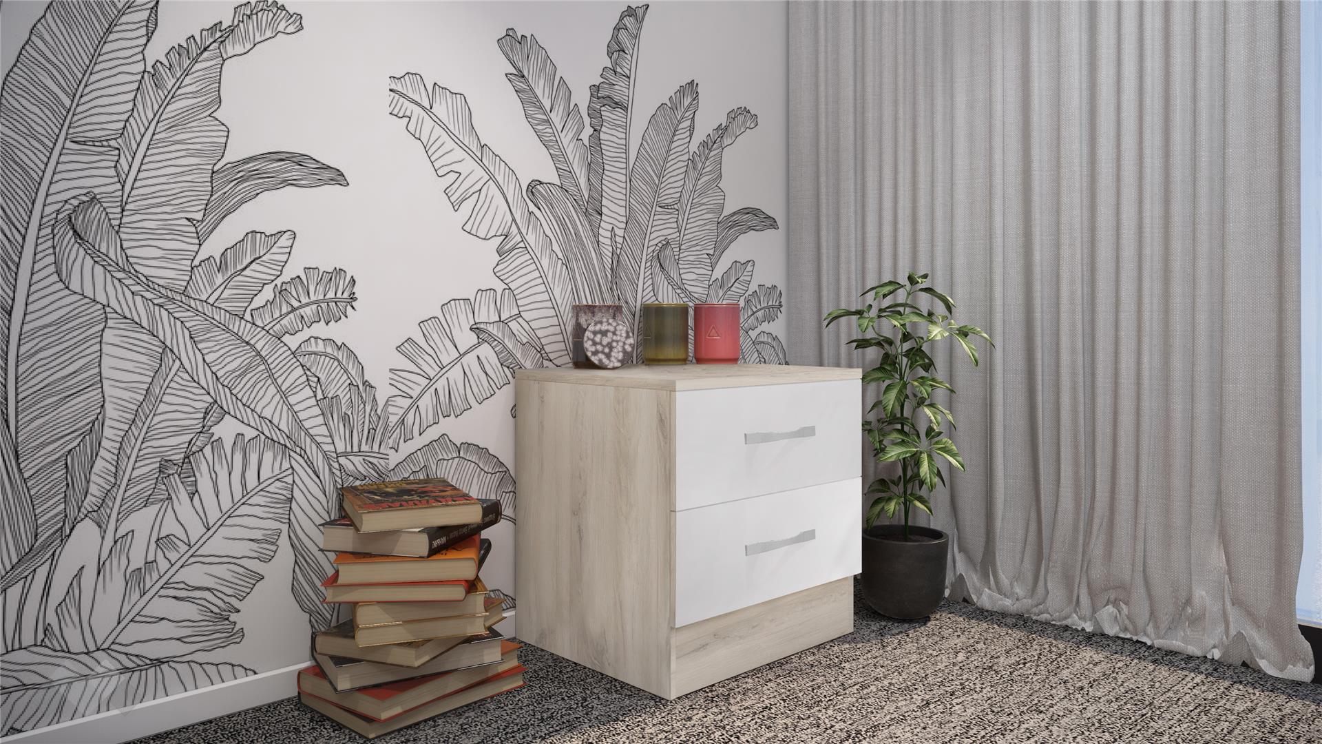 ⭐ Предимства: ✓ 2 чекмеджета ✓ компактен и практичен ✓ модерен декор ✓ качествена изработка ✓ 16 мм ПДЧ