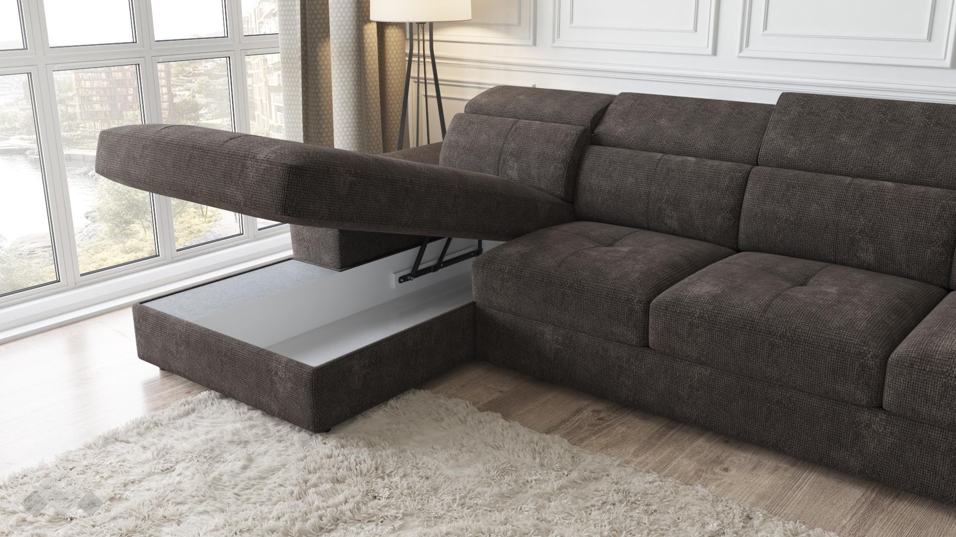 Моделът разполага с функция сън с площ 260 см дължина и 125 см ширина, която се активира чрез издърпващ механизъм – практично и лесно решение за настаняване на гости или ежедневна употреба. Под лежанката е разположена ракла за съхранение, осигуряваща допълнително пространство за завивки, възглавници или други вещи.
