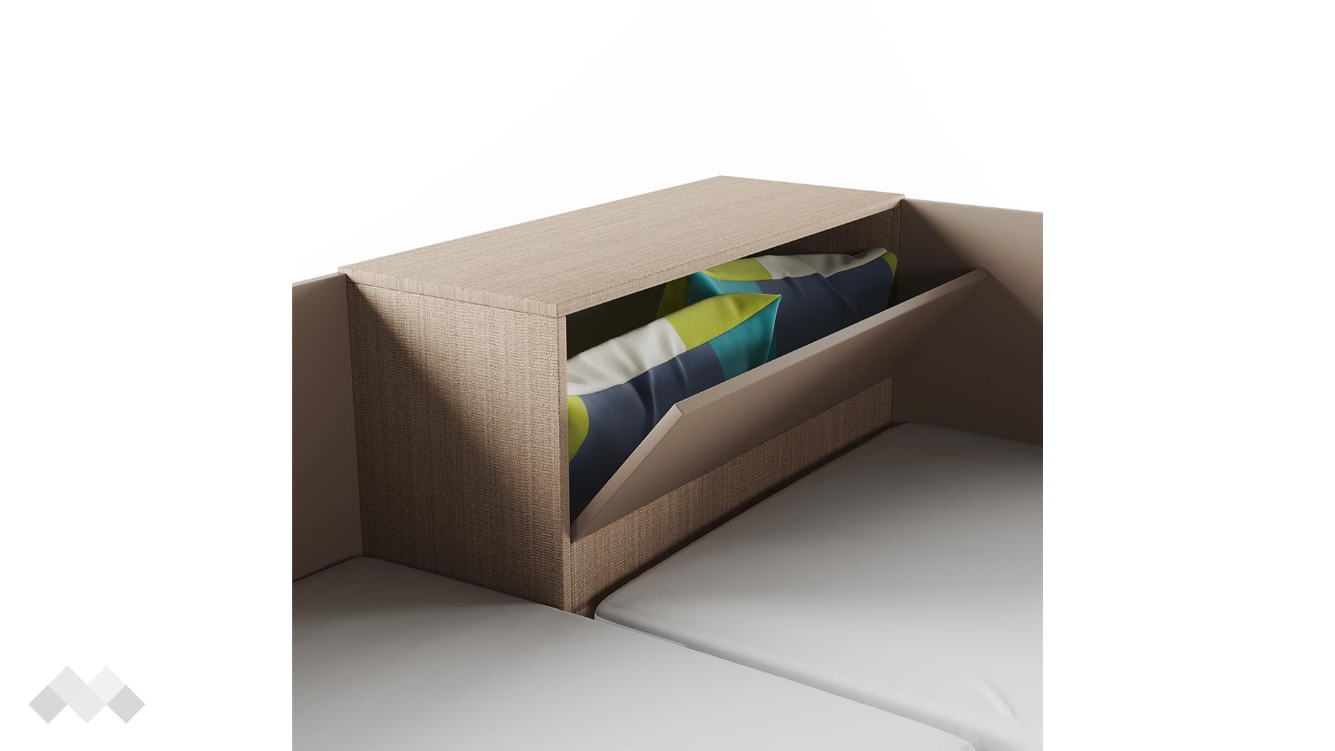 Леглата са подходящи за матраци с размер 82/190 см. Те са оборудвани с повдигащ пружинен механизъм, който ги превръща в практични ракли за съхранение на завивки, възглавници, спално бельо или дрехи. Това е безценно предимство при по-малките жилища, където всеки сантиметър е от значение. Допълнителният делител на подматрачното пространство прави организацията на вещите още по-лесна.