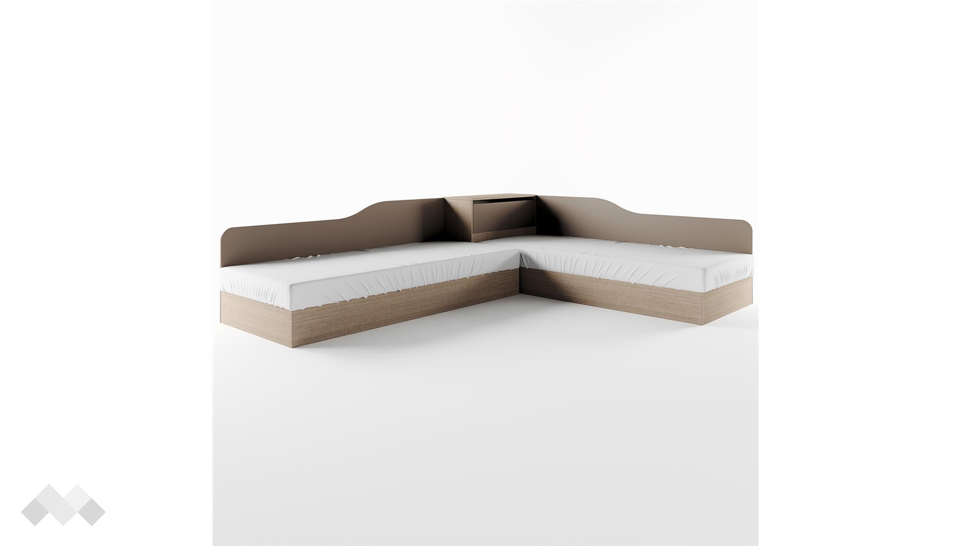 Ъгловите легла са хитър начин да използваш пространството в детската стая. С тяхна помощ оставяш свободно място за движение и игри в помещението и в същото време имаш лесен достъп до всяко легло. Удобно разположената между тях ракла е идеалното място, където да се съхраняват меките завивки и възглавници, така че винаги да са под ръка на детето, без да се виждат.
