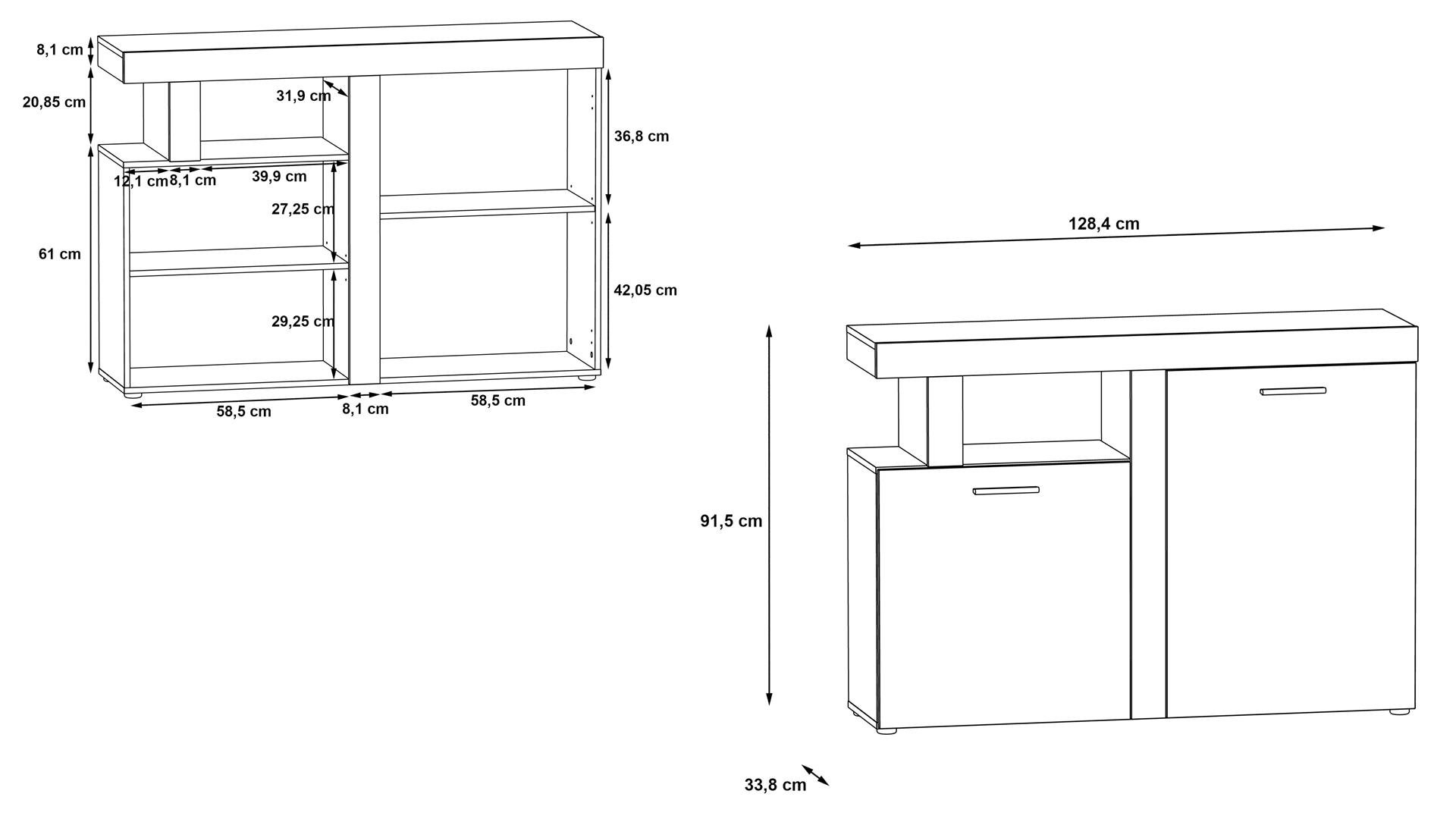 В: 91.5 см Ш: 33.8 см Д: 128.4 см