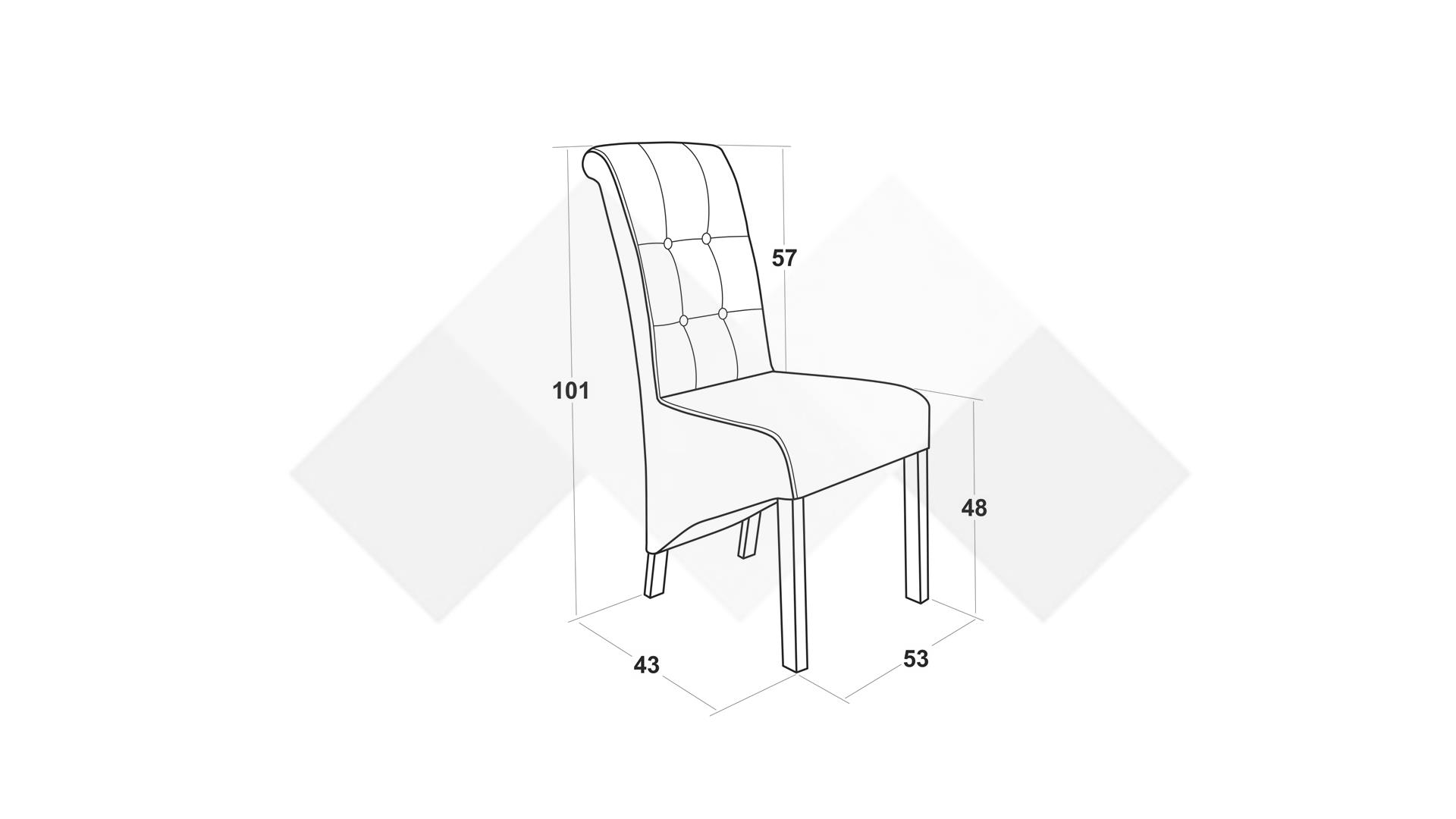 Трапезен стол Дона разполага с широка седалка, която осигурява високо ниво на удобство и комфорт на седене. Този стол ще привлече погледите на гостите ти, благодарение на уникалния си, модерен дизайн. Копчетата, пришити в тапицерията, елегантно подчертават извивката на облегалката, а дамаската продължава по дължината на стола.