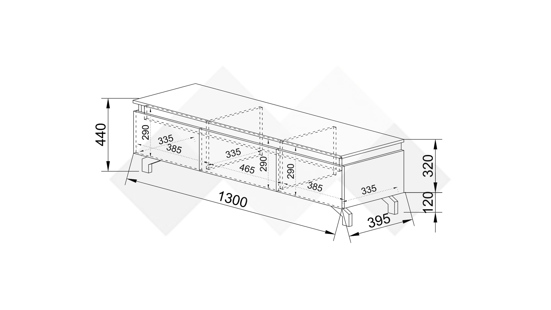Разполага с два затворени шкафа с врати, които са със странично отваряне и с един затворен шкаф с падаща врата. С трите си просторни затворени шкафа осигурява достатъчно място за съхранение на всичко необходимо – от медийни устройства и дистанционни до книги и аксесоари.