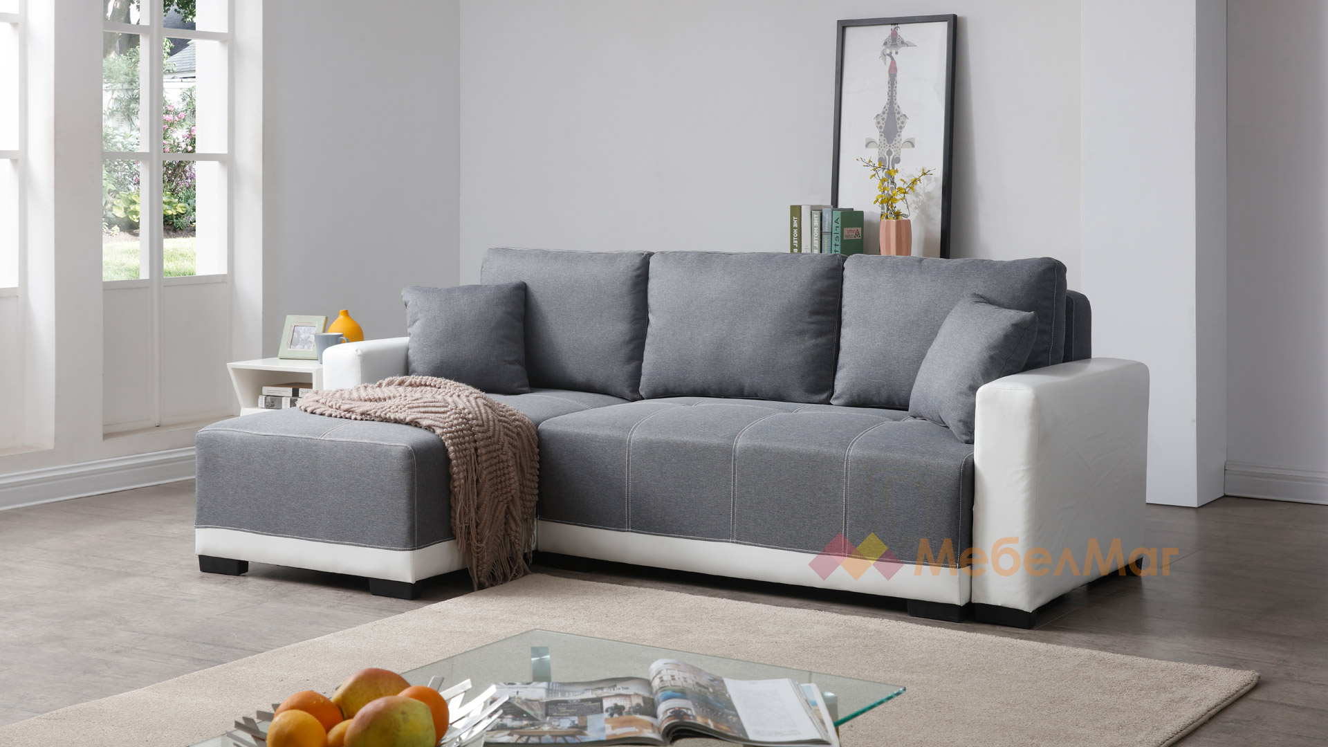 Ъглов диванДъглассив с бяла кожа с посока: ляв
