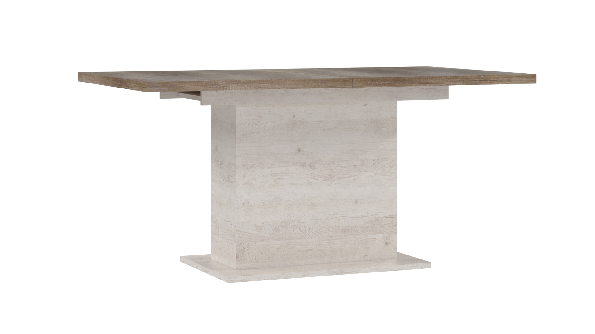 Моделът разполага с разтегателен механизъм, който увеличава дължината на плота от 160 до 200 см, позволявайки удобно настаняване на повече хора. Правоъгълната форма и стабилната основа осигуряват надеждност и достатъчно място за подреждане на ястия и сервиз.