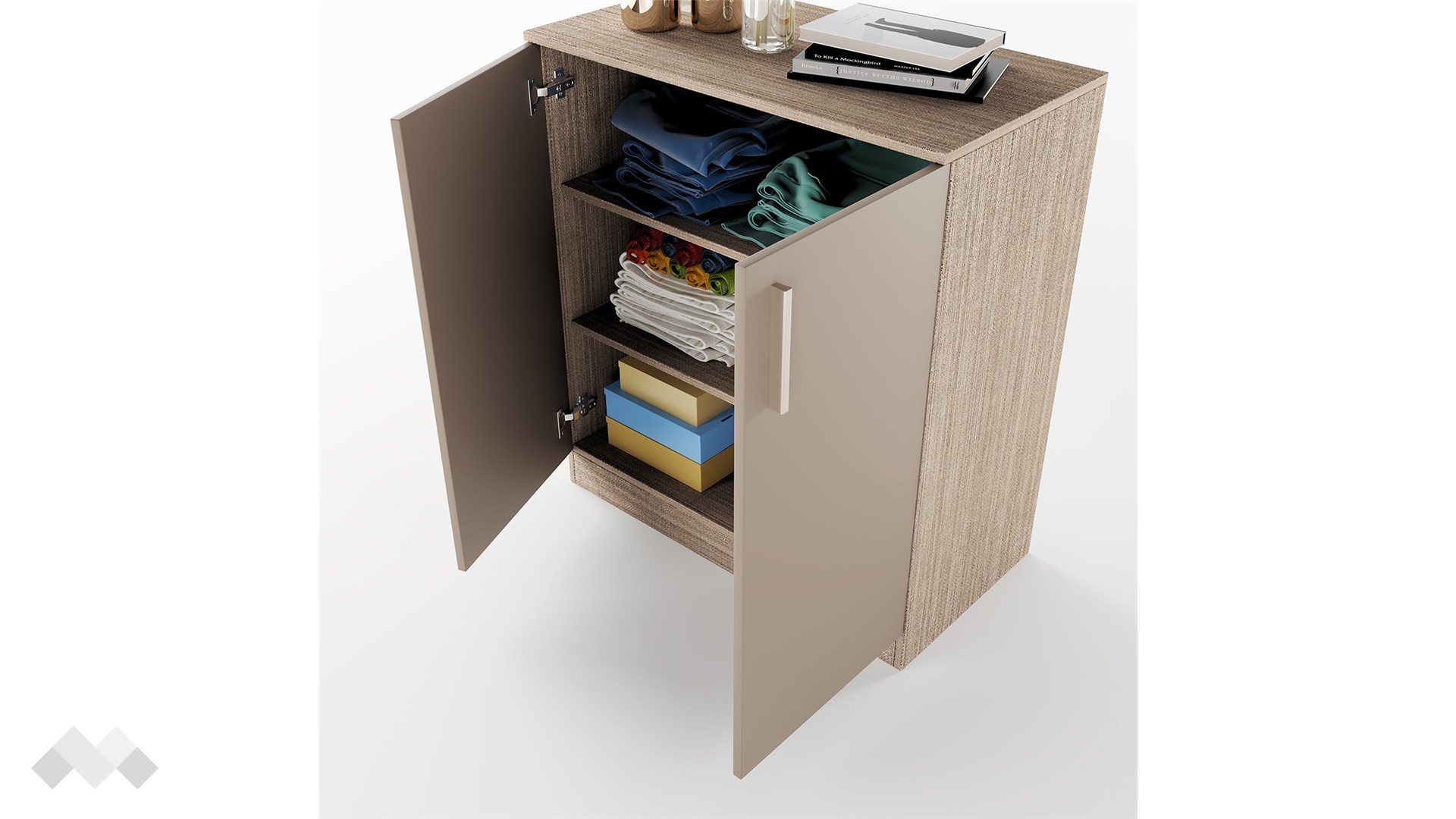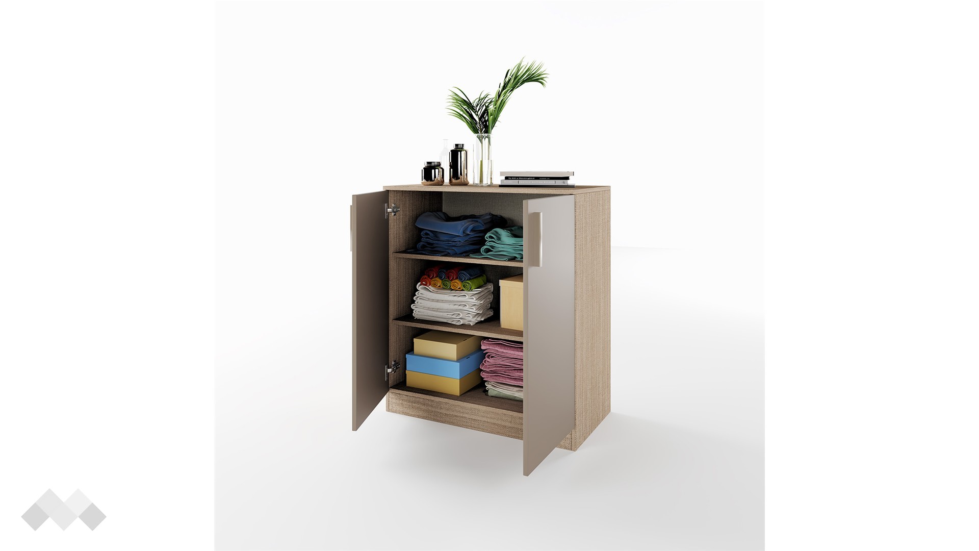 Зад двете врати се крият два рафта, които ти предоставят достатъчно място за дрехи, бельо, аксесоари, малки ел. уреди, кутии за съхранение или други необходими за теб вещи. Горният плот можеш да използваш за подреждане на декорации, книги, козметика или други неща, които да ти бъдат винаги под ръка.