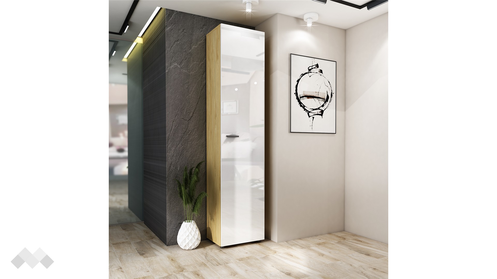Функционалното разпределение ще ти позволи да подредиш добре всички дрехи и аксесоари. Вратата се отваря леко и ти дава бърз достъп до всичко вътре, а за допълнително удобство е снабдена с механизъм за плавно затваряне.