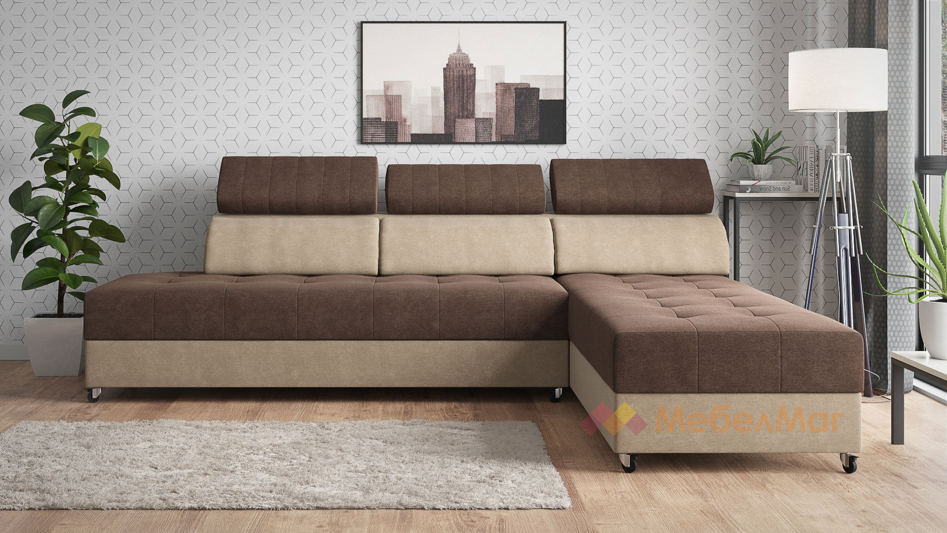 Ъглов диванЕлеганс Покеткафяв с бежово универсален ъгъл