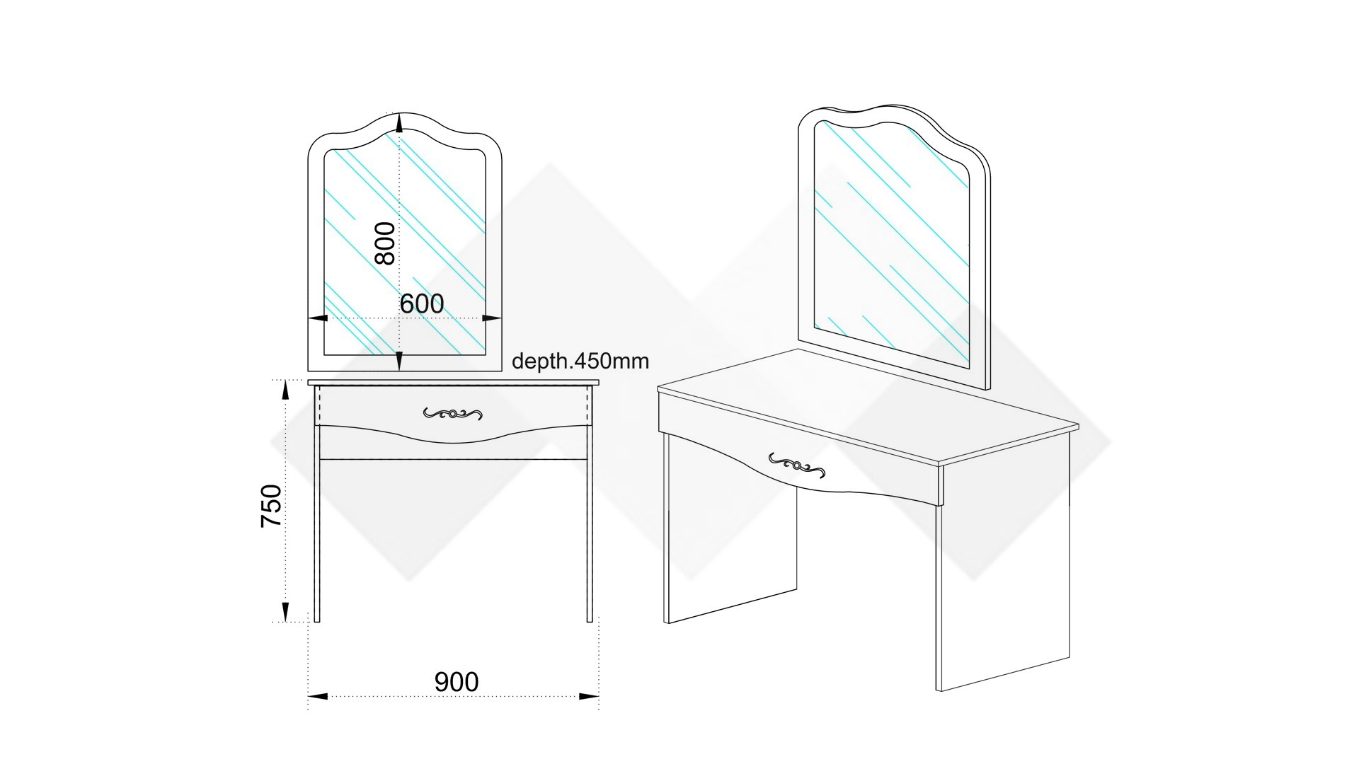 Към нея е включено и огледало с оптимални размери Д: 60 см. В: 80 см. и е чудесно допълнение към спален комплект Елизабет