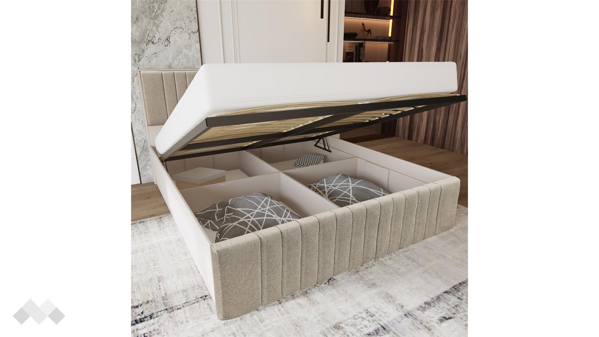 Тапицирана спалня Еридан е подходяща за матрак с размер 180/200 см. Тя идва с включен механизъм за повдигане на матрака. Вече няма да е необходимо да се чудиш къде да подредиш зимните дрехи през лятото, защото този модел ти предлага решение. Завивки, възглавници, одеяла - всичко може да намери място отдолу, за да създаде прилежен и подреден вид в твоята спалня. Допълнителният делител на подматрачното пространство прави организацията на вещите още по-лесна и гарантира по-високо качество на модела.