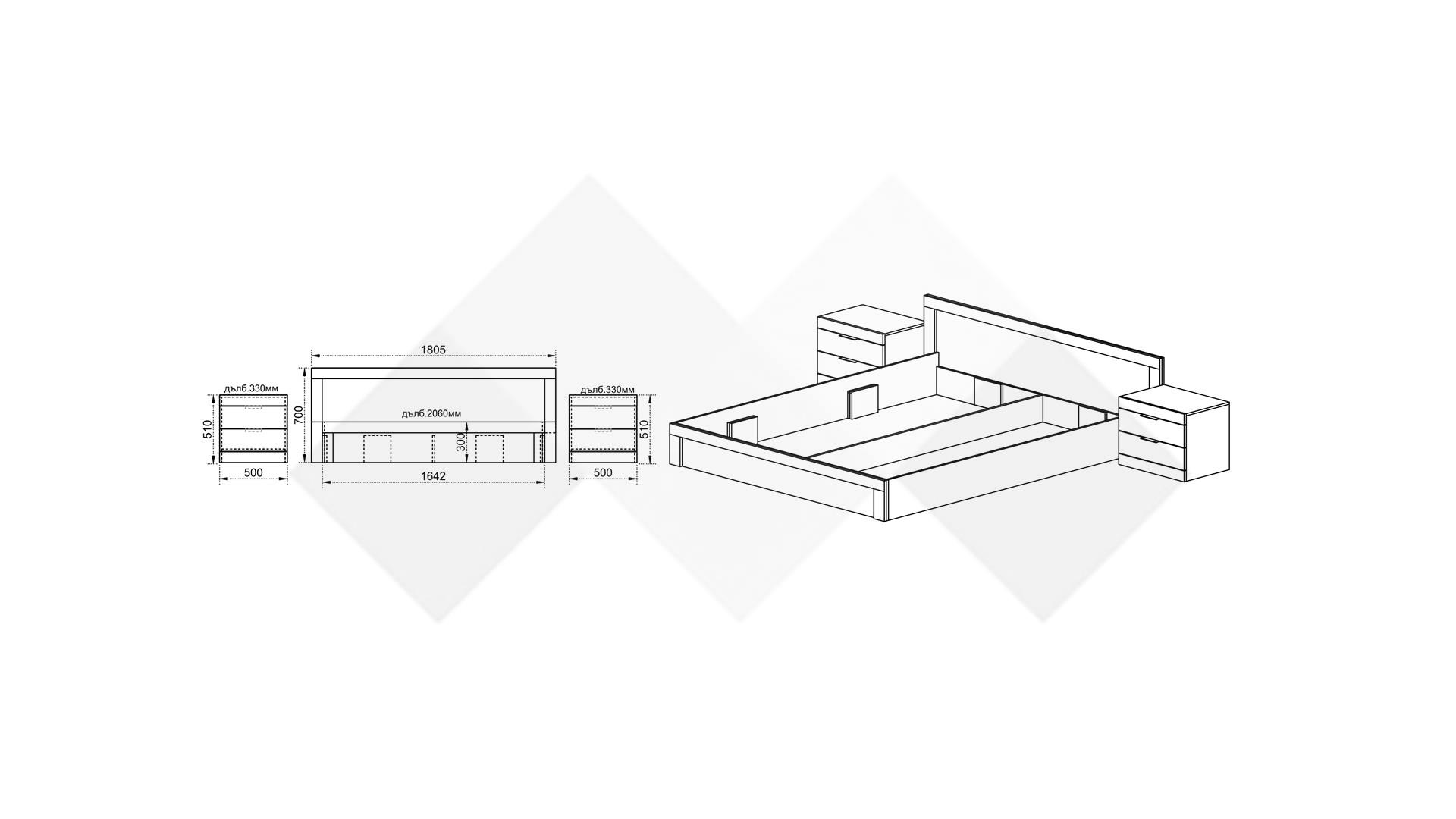 ✓ 2 нощни шкафчета ✓ семпъл дизайн ✓ качествена изработка ✓ делител на подматрачното пространство ✓ 16 мм ПДЧ