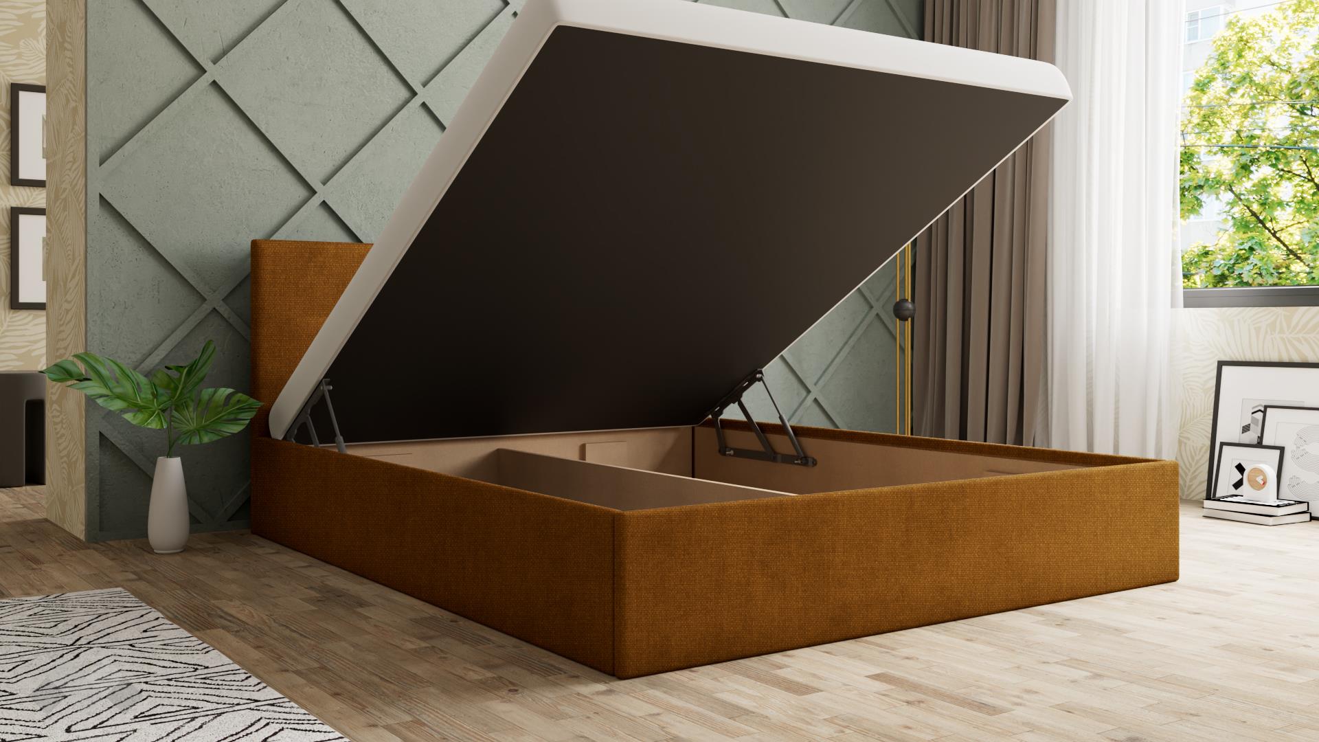 Тапицирана спалня Фиорела е с идеалните размери – подходяща е за матрак с размер 160/200 см. С повдигането на матрака пък се открива широко пространство, готово да побере всички възглавници и завивки, на които все не се намира място. Допълнителният делител на подматрачното пространство прави организацията на вещите още по-лесна.