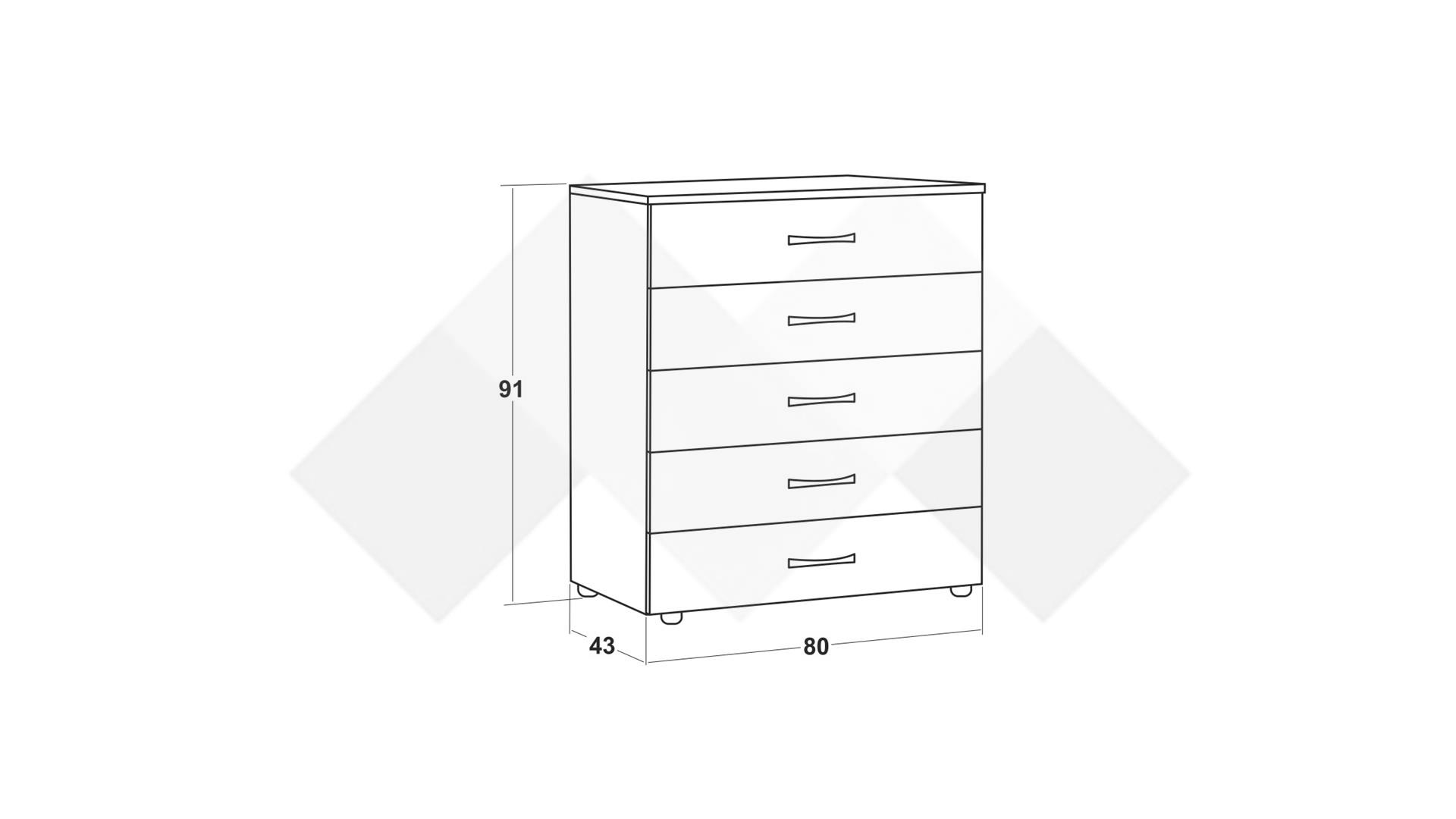 На твое разположение са пет чекмеджета, в които с лекота ще организираш голямо количество дрехи, бельо, аксесоари или други необходими за теб неща. Горният плот е чудесно място за подреждане на декорации, книги, козметика или други вещи, които искаш да ти бъдат винаги под ръка. Ако добавиш подходящо огледало над него, скринът ще се превърне в елегантна тоалетка - незаменим помощник в ежедневието.