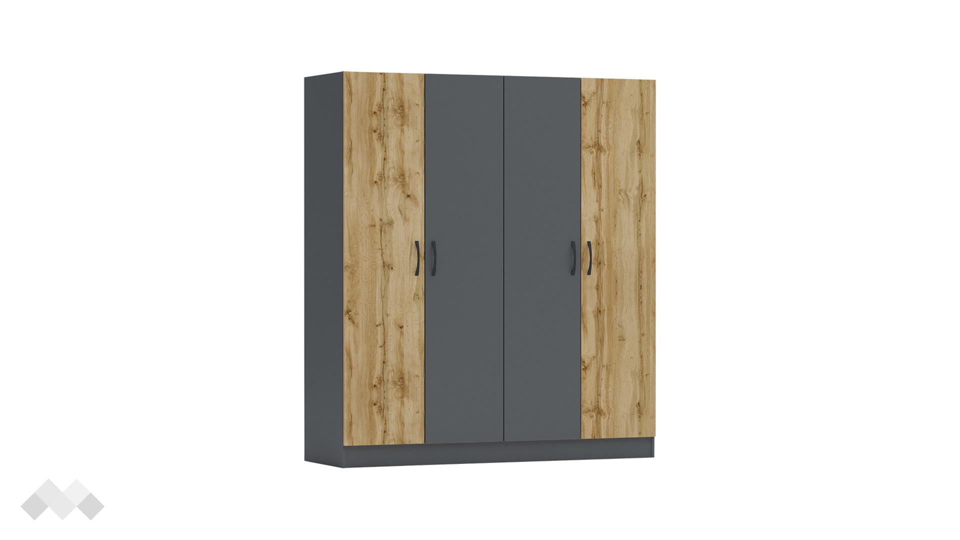 Ако държиш на стилните и практични мебели, четирикрилен гардероб Галати е перфектният избор за теб! Той ще те впечатли с функционалното си разпределение, което ще ти позволи да подредиш добре всички дрехи и аксесоари. Благодарение на семплия си дизайн, този гардероб би се вписал във всеки интериор.