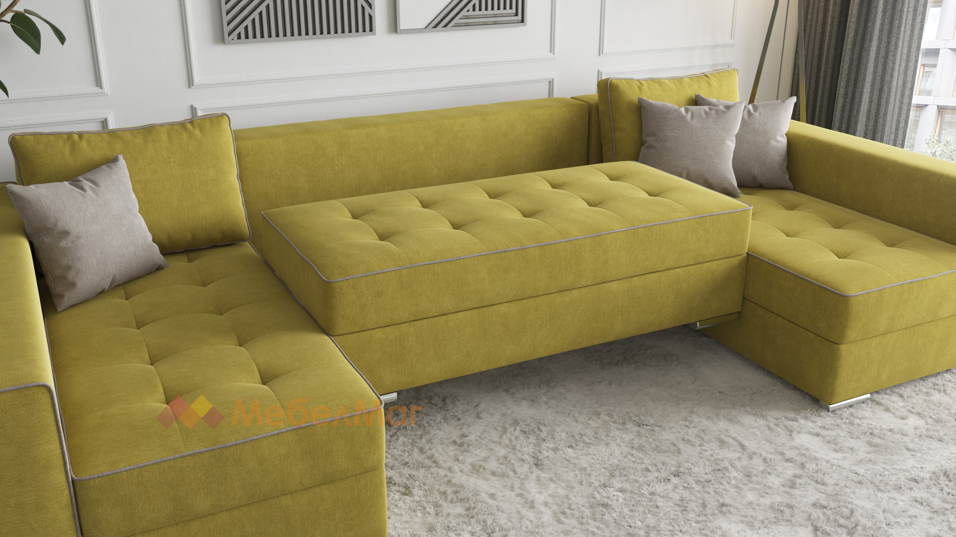 Превърни хола си в истинско убежище на уют и комфорт с изискания П-образен ъглов диван Гранада. Създаден да отговори на всички твои нужди, той съчетава стилен дизайн с изключителна функционалност. Просторната П-образна форма осигурява достатъчно място за цялото семейство и приятели, идеална за събирания и релаксация.