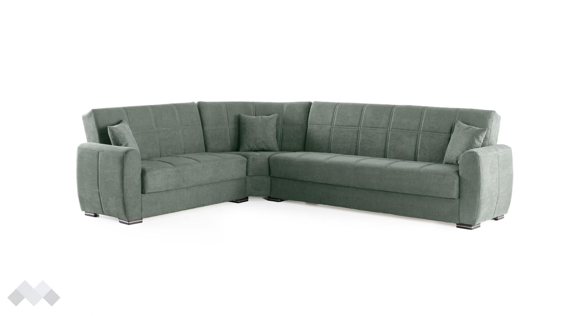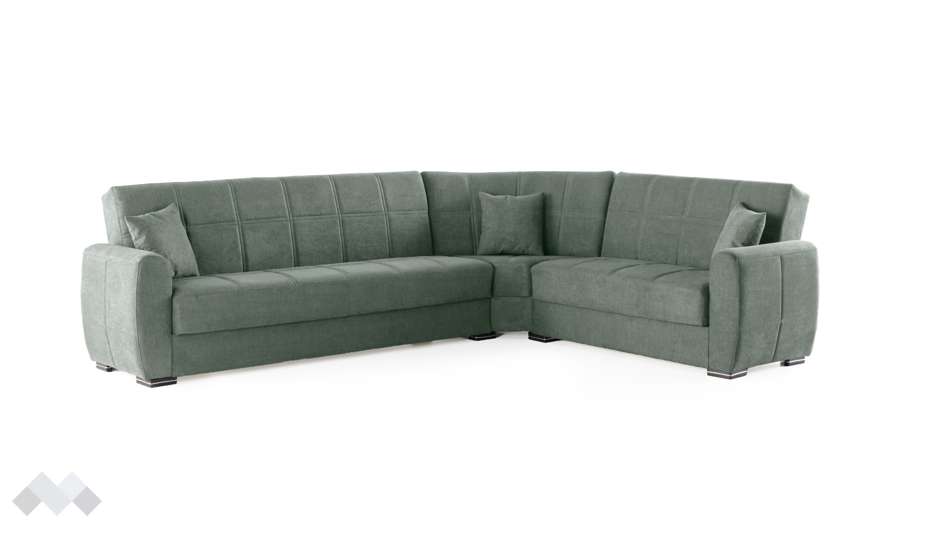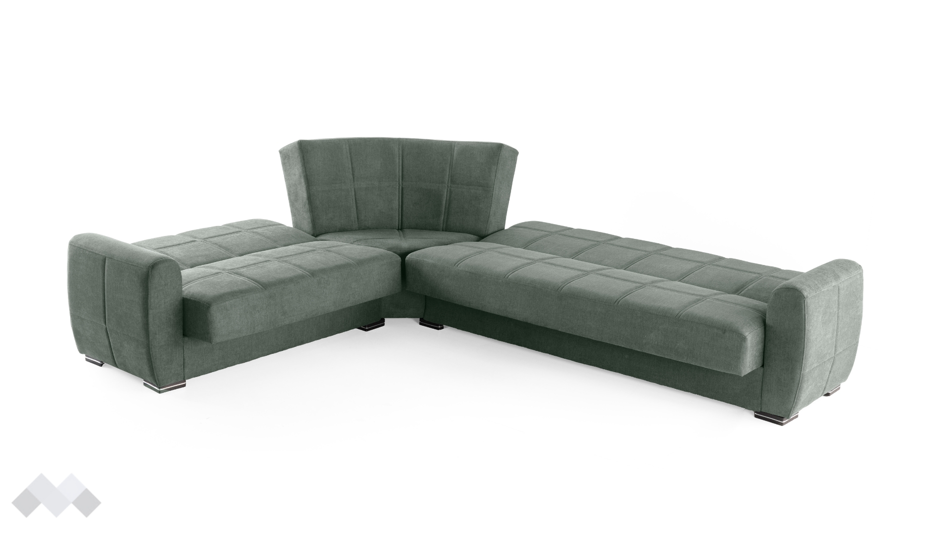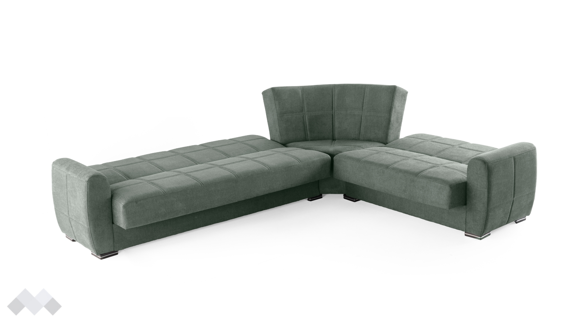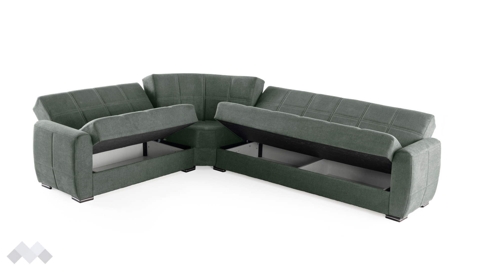 Моделът разполага сотделни зони за сън – една основна и една допълнителна, което го прави изключително подходящ за домакинства, които често посрещат гости или разчитат на дивана за редовно спане. Трансформацията в легло става бързо и лесно чрез удобен клик-клак механизъм, а под седалките се крият две практични ракли за съхранение на спално бельо, одеяла или други вещи.