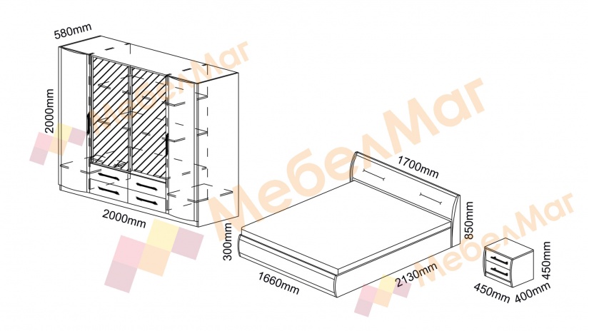 Спалният комплект е изработен от висококачествено ПДЧ с дебелина 18 мм.