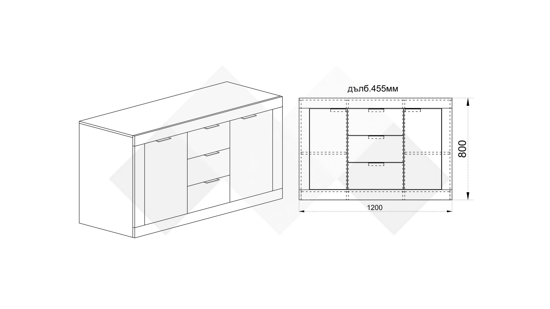 ✓ 3 чекмеджета ✓ 2 затворени шкафа ✓ компактен и практичен ✓ модерен декор ✓ качествена изработка ✓ 16 мм ПДЧ