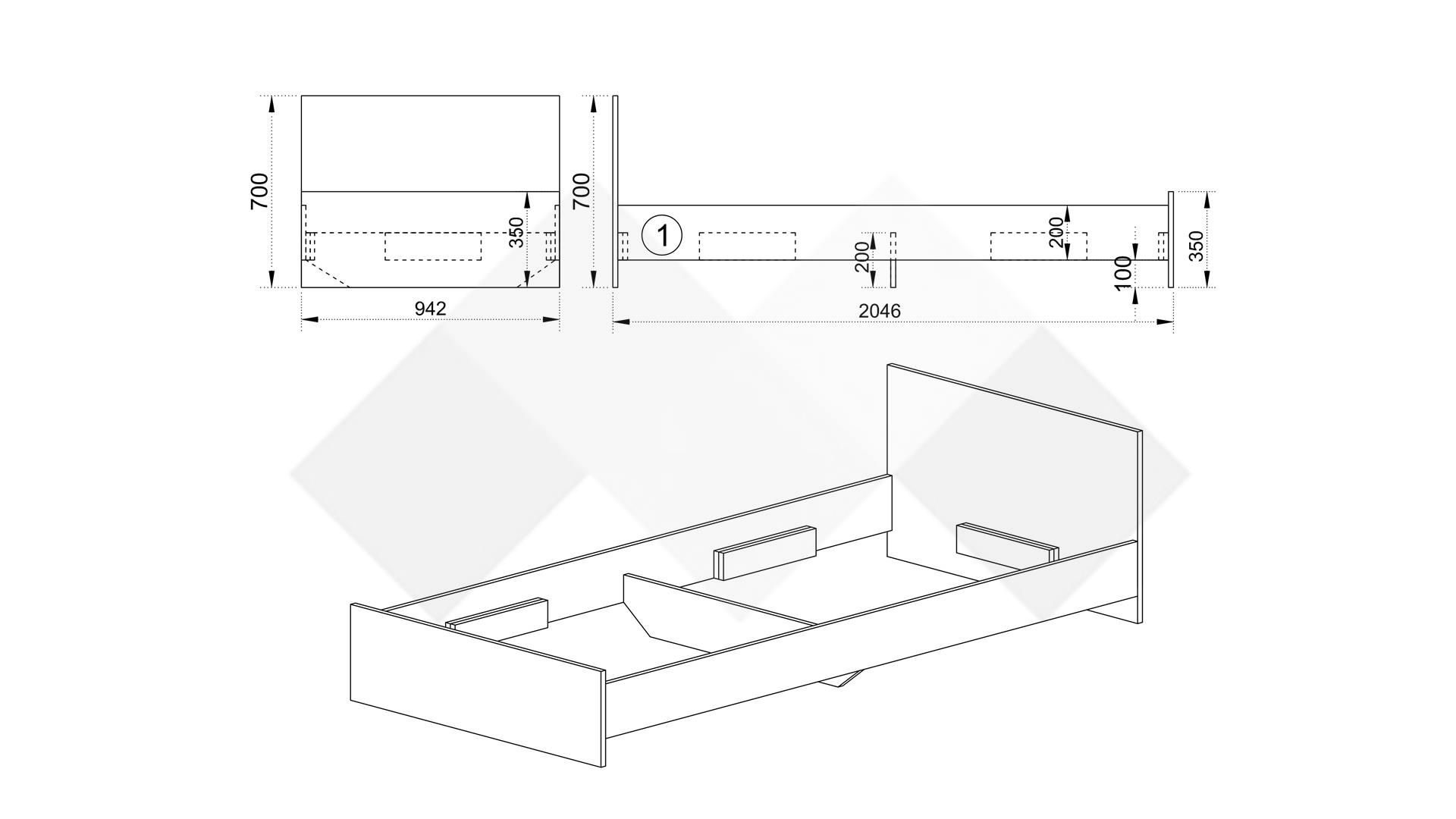 Леглото няма възможност за поставяне на механизъм за повдигане на матрака. Подходящо е за еднолицев и двулицев матрак.