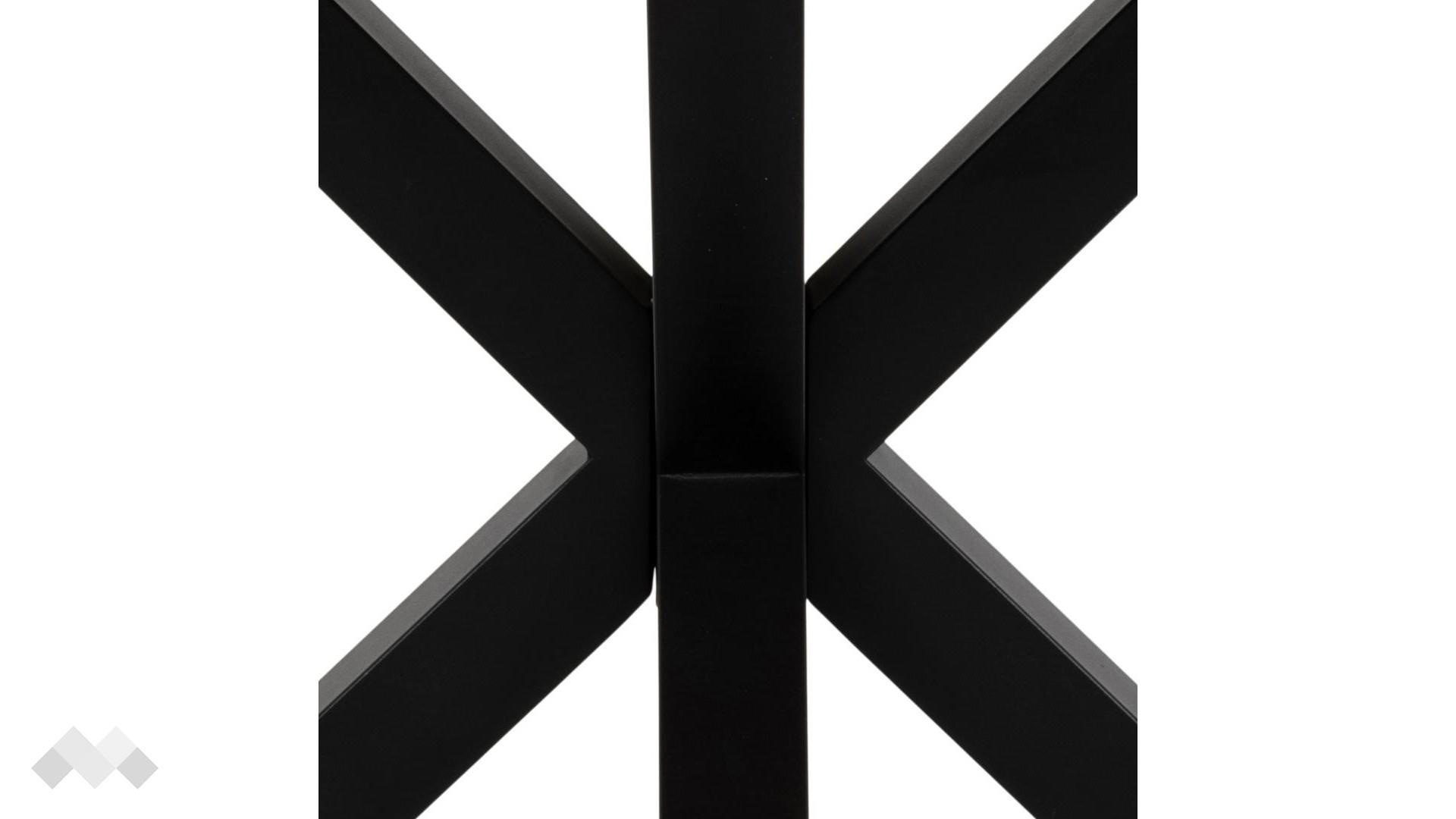 Скулптурната стоманена основа впечатлява със своя артистичен дизайн и стабилна конструкция. Тя не само осигурява надеждна опора, но и придава динамичен и изтънчен облик на масата, превръщайки я в акцент на всяко пространство.