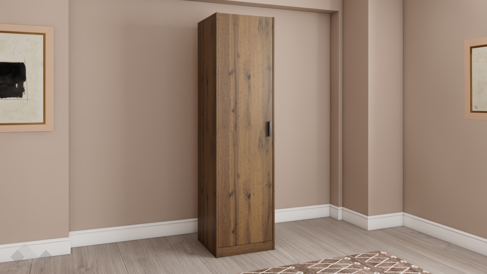 Този модел има практично разпределение, което ще ти позволи да подредиш прилежно всички дрехи и аксесоари. Той е еднокрилен с 4 обемни рафта. Можеш да използваш рафтовете за съхранение на сгънати дрехи, по-обемни пуловери, завивки или други вещи.
