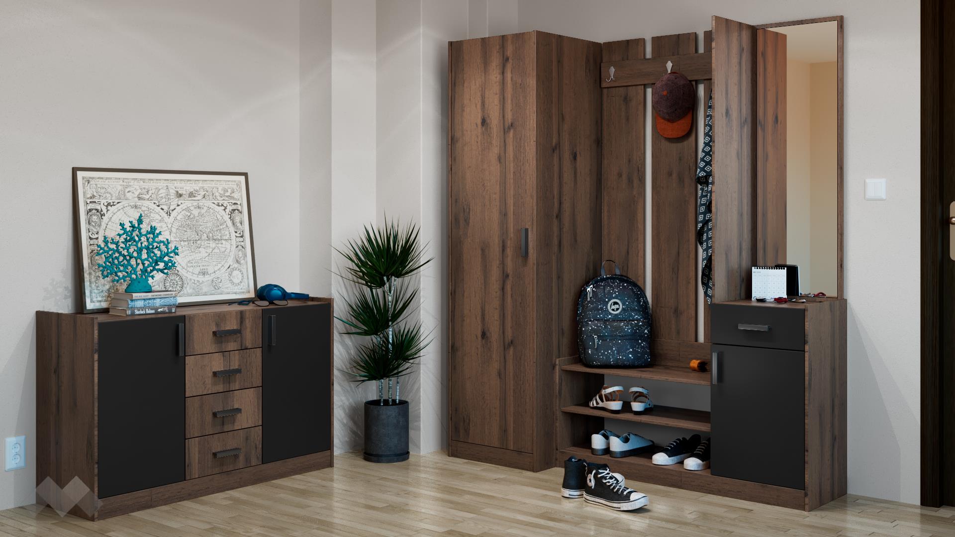 ⭐ Предимства: ✓ 4 чекмеджета ✓ 2 затворени шкафа ✓ ✓ компактен и практичен ✓ модерен винтидж декор с WNR структура ✓ качествена изработка ✓ 16 мм ПДЧ