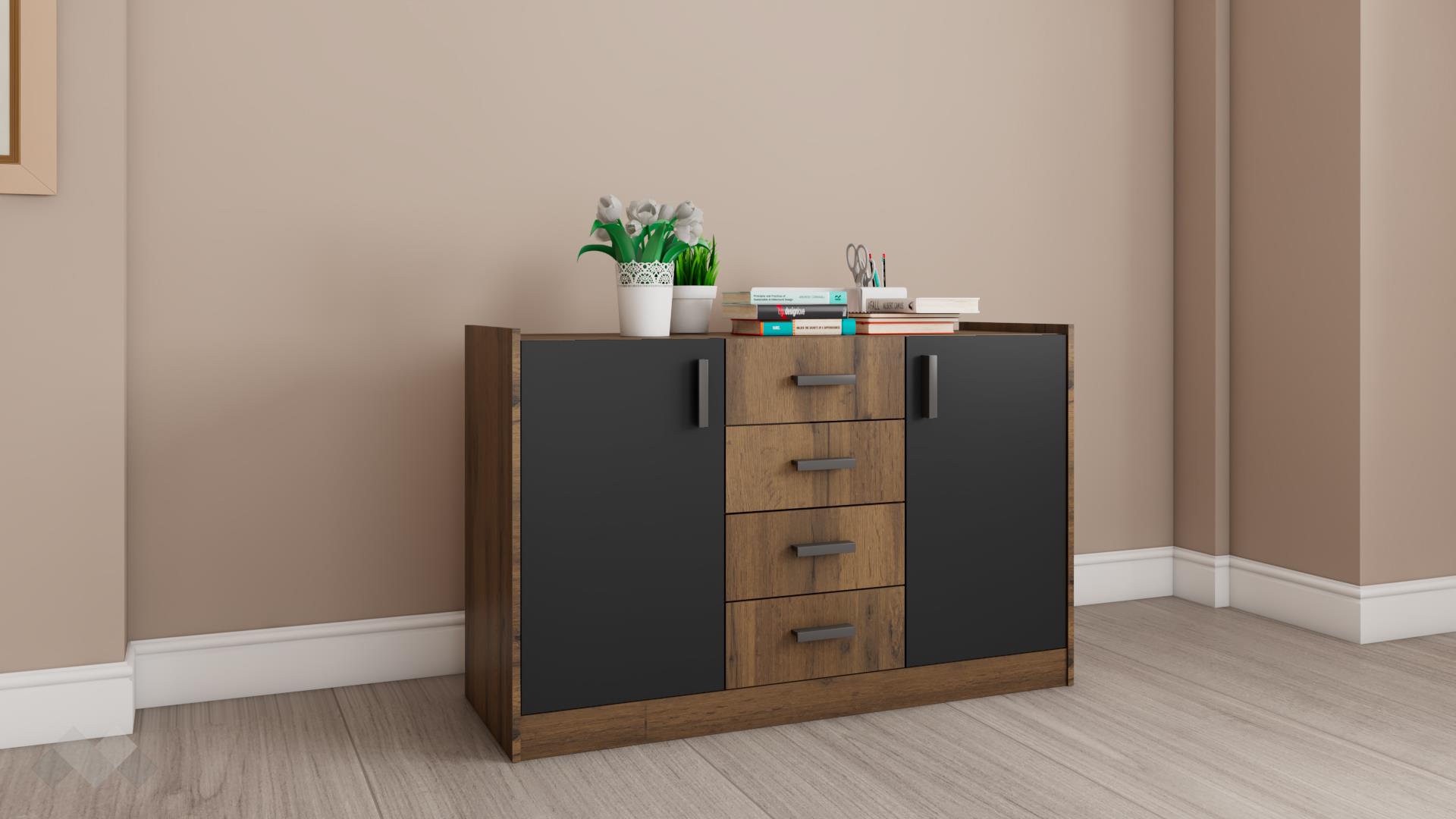 Практичен скрин, който можеш да разположиш във всяко помещение в жилището си. Благодарение на четирите чекмеджета и двата затворени шкафа с по един рафт, разполагаш с достатъчно място за организация на всякакви вещи и дреболии.