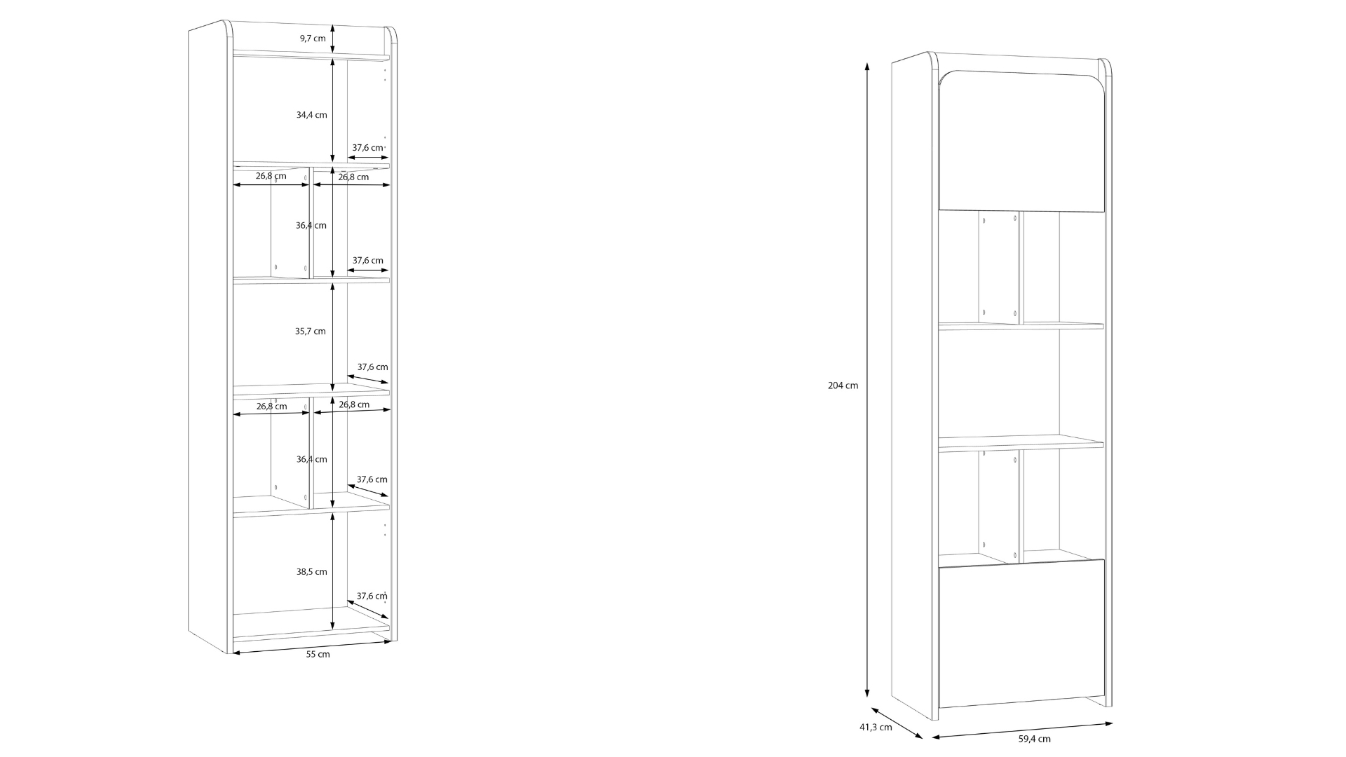 Изчистената линия и компактният силует го правят подходящ както за всекидневната, така и за работен кът или спалня. Височината му осигурява максимално използване на вертикалното пространство, без да заема много място на пода.