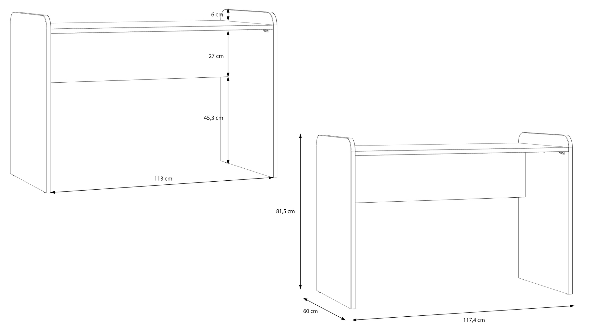 Изработено изцяло от 22 мм ПДЧ, бюрото се отличава със стабилна конструкция и дълготрайност, осигурявайки надеждна опора в ежедневната употреба.