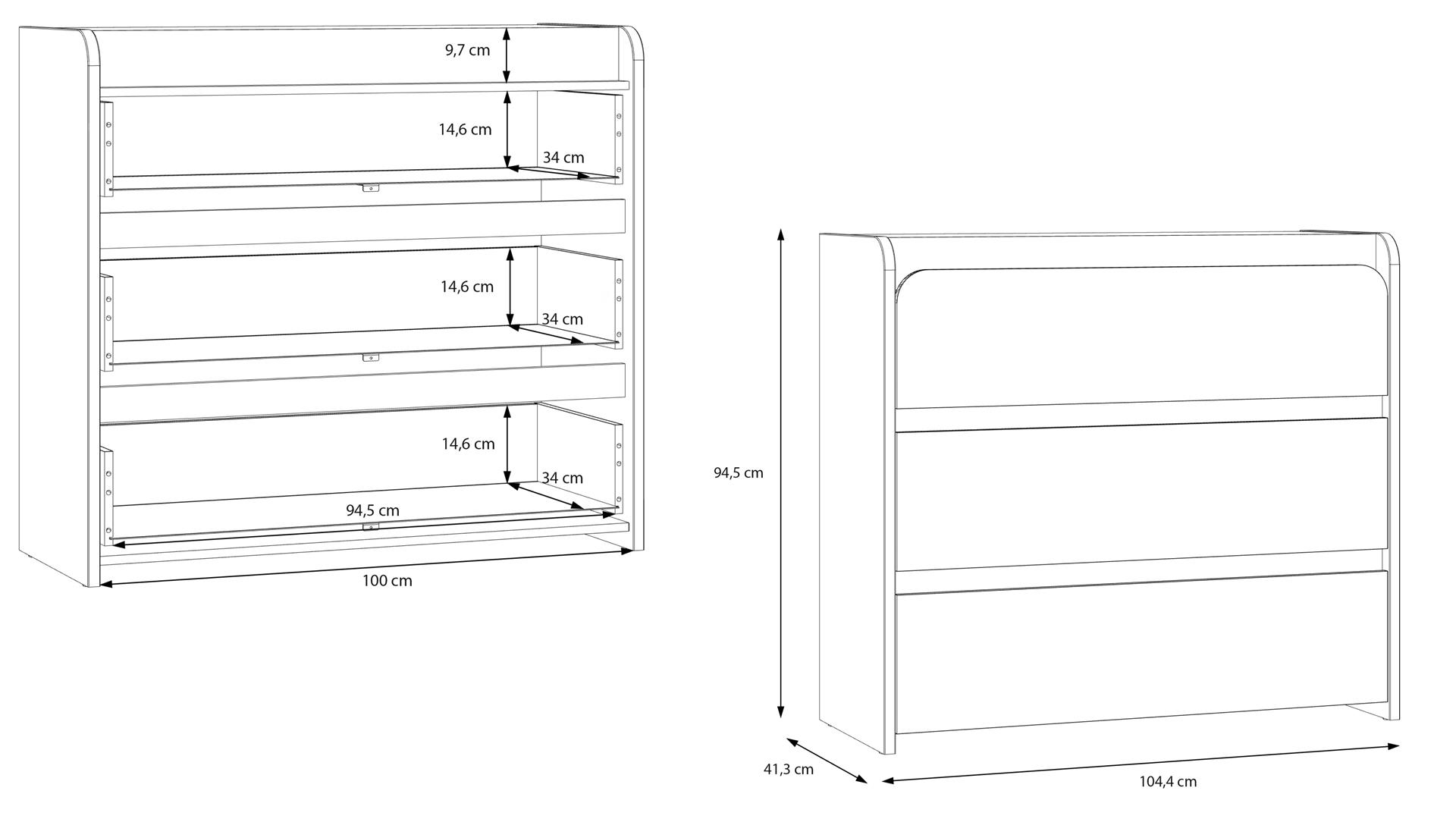 В: 94.5 см Ш: 41.3 см Д: 104.4 см