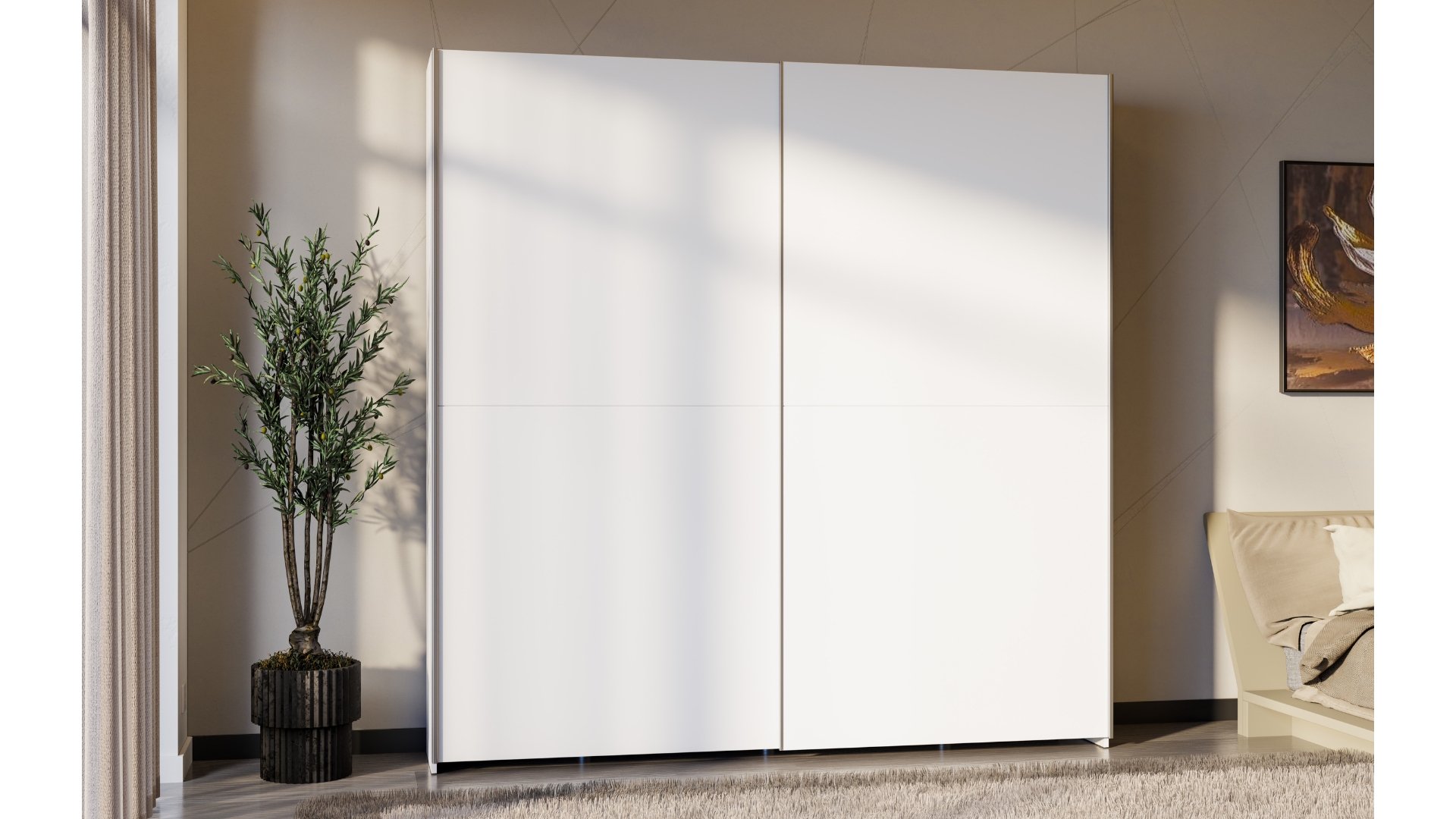 Гардеробът Хомано е идеалното решение за всеки, който търси модерно, функционално и просторно място за съхранение на дрехи и аксесоари. Неговият изчистен дизайн с плъзгащи врати го прави перфектен за по-малки помещения, тъй като не изисква допълнително място за отваряне на вратите.