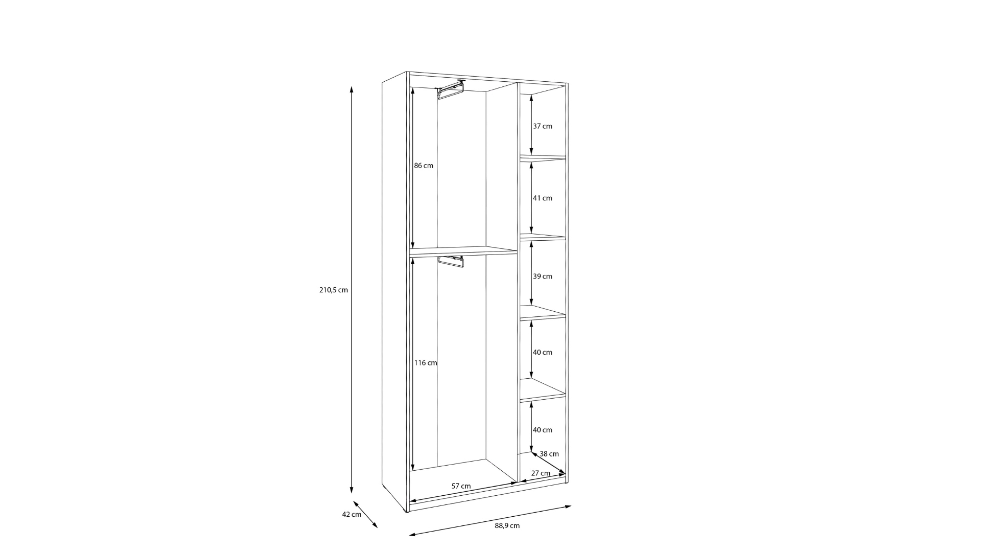 В: 210,5 см Ш: 42 см Д: 88,9 см