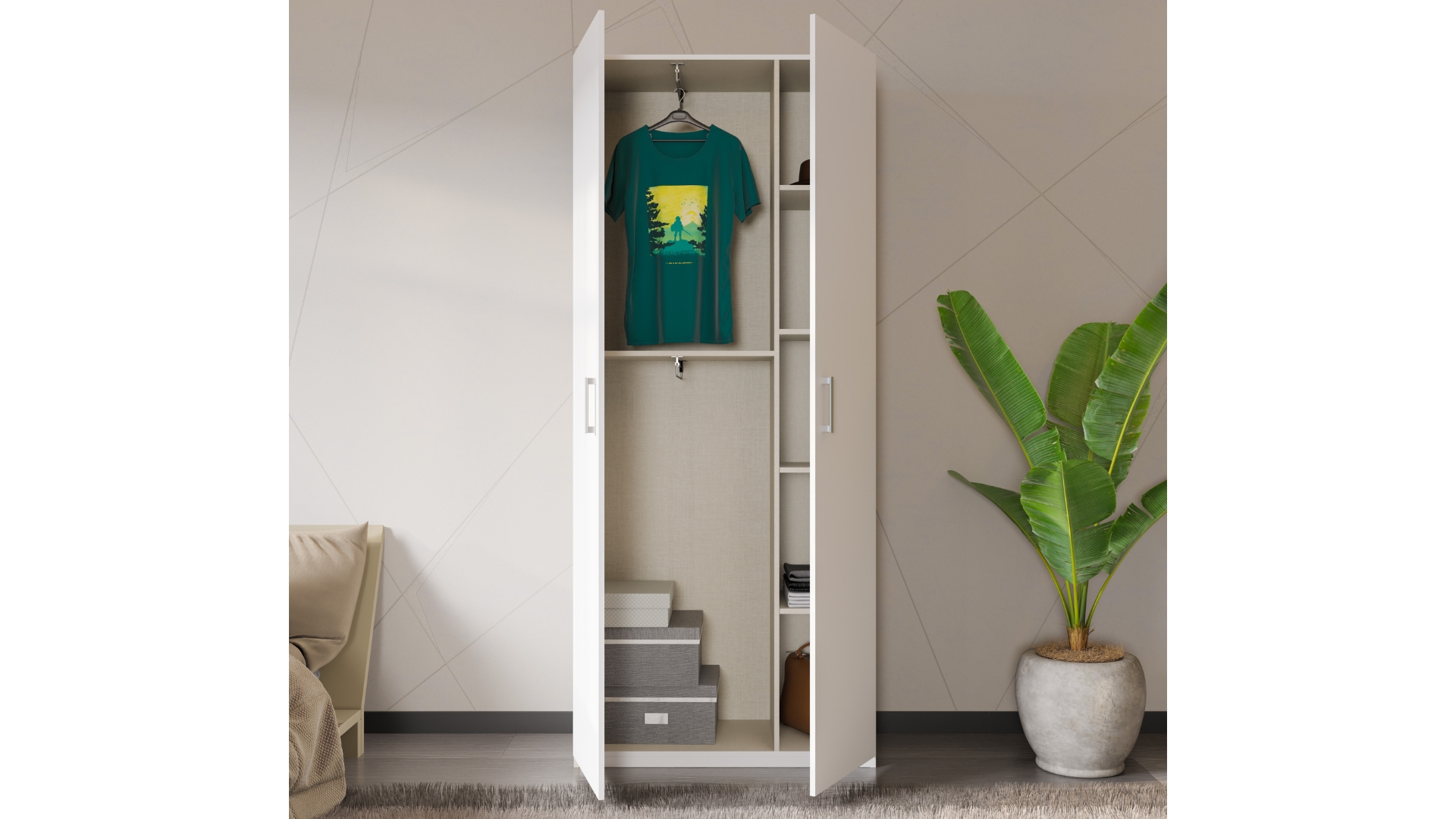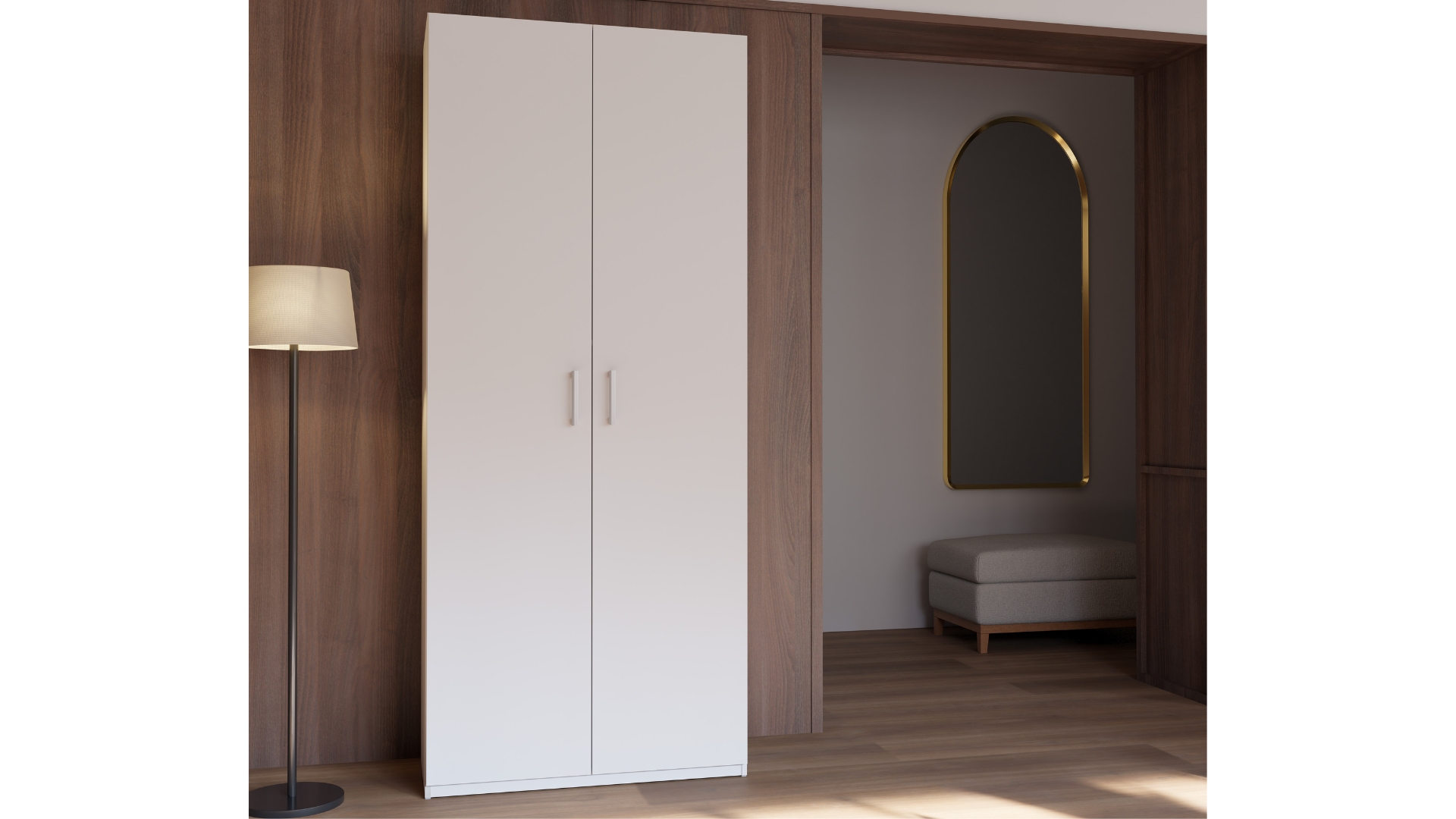 Гардеробът Хомано е идеалното решение за всеки, който търси модерно, функционално и добре организирано място за съхранение на дрехи и аксесоари. Неговият изчистен дизайн с две отварящи се врати го прави универсален избор за различни интериори.
