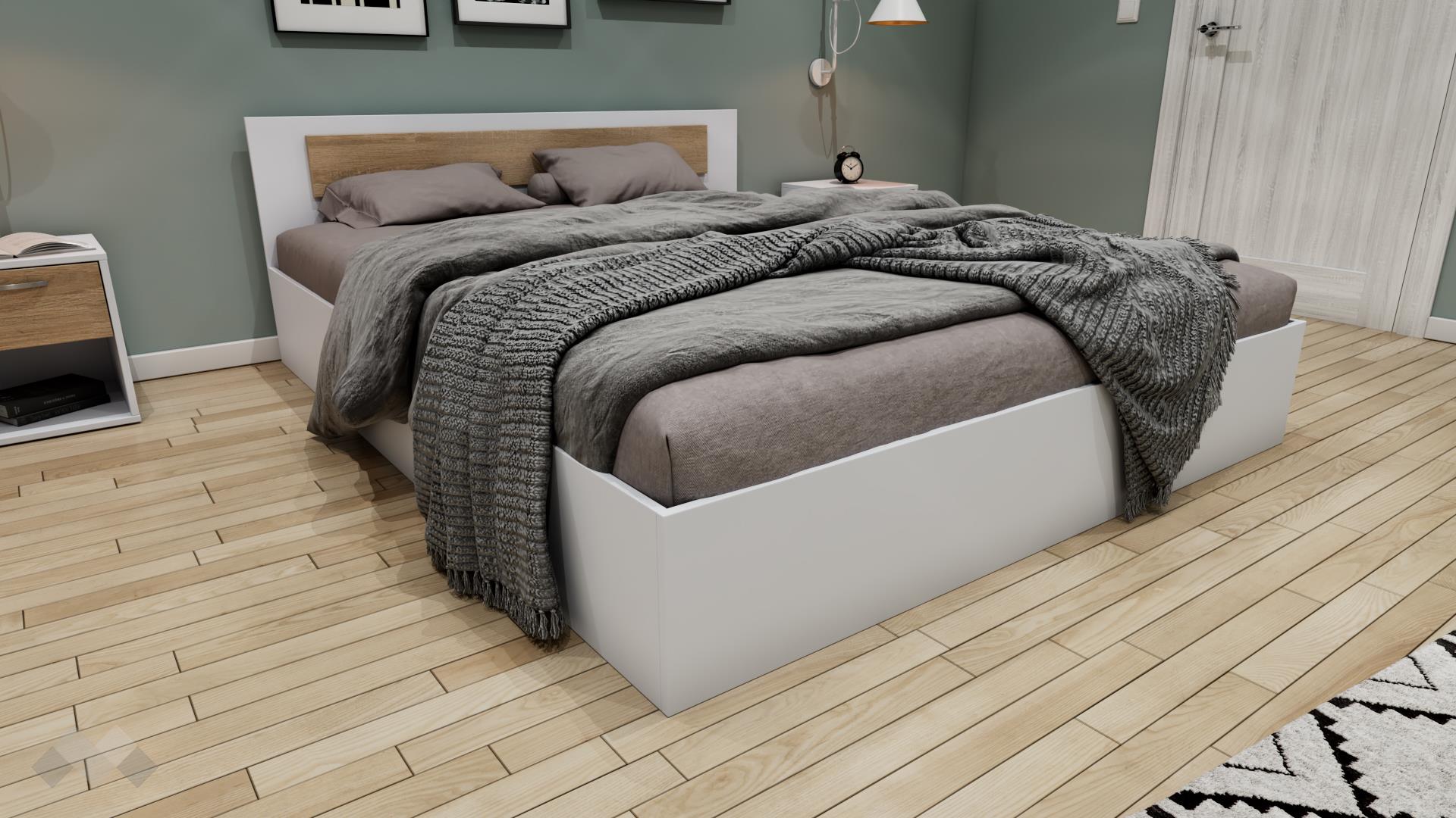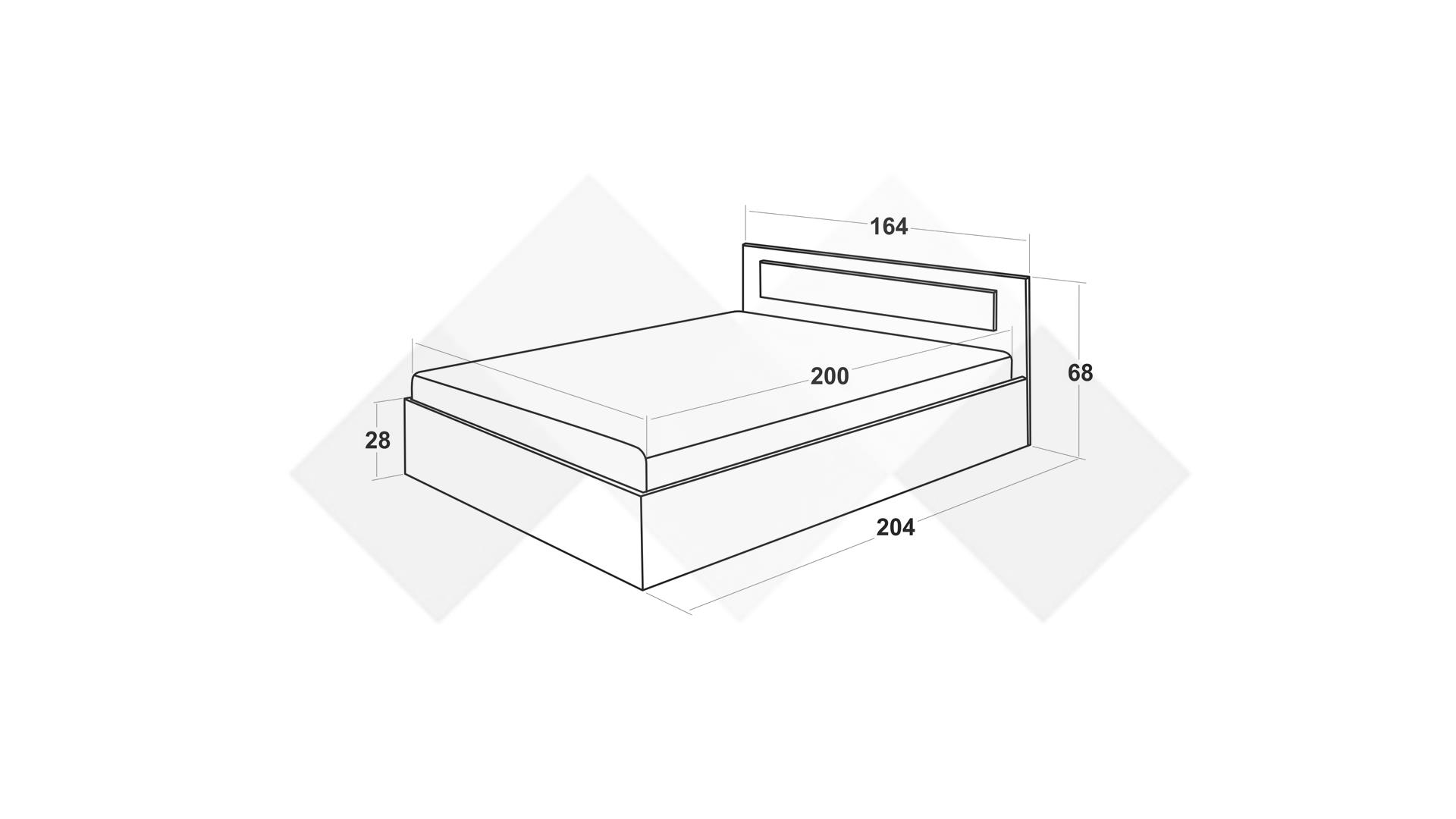 Спалнята е подходяща за матрак с размери 160/200 см, което я прави достатъчно широка за семейна спалня и в същото време не заема излишно пространство. Таблата е достатъчно висока и удобна за облягане при четене на книга или гледане на телевизия.