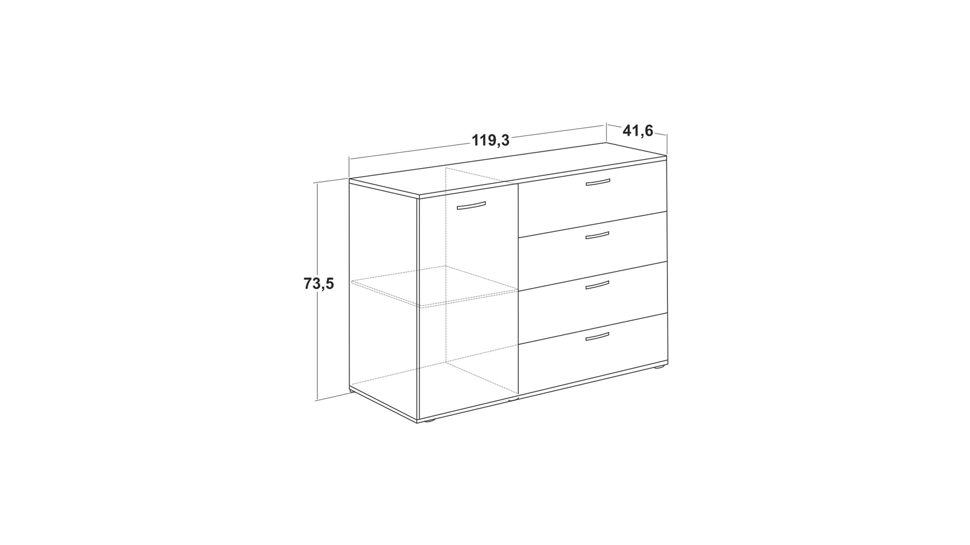 Д: 119,3 см Ш: 41,6 см В: 73,5 см