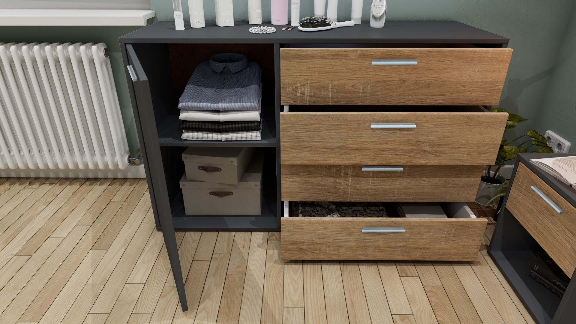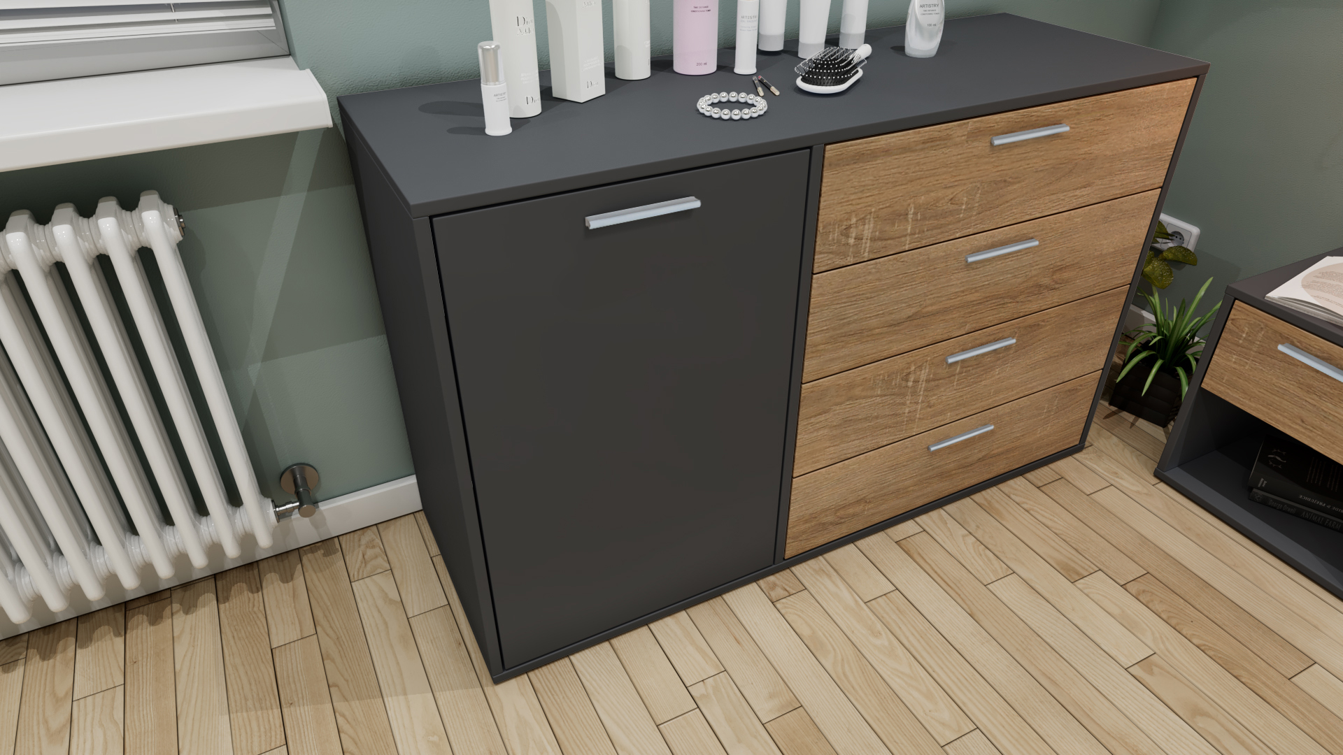 ⭐ Предимства: ✓ 4 чекмеджета ✓ затворен шкаф ✓ компактен и практичен ✓ модерен декор ✓ качествена изработка ✓ 16 мм ПДЧ