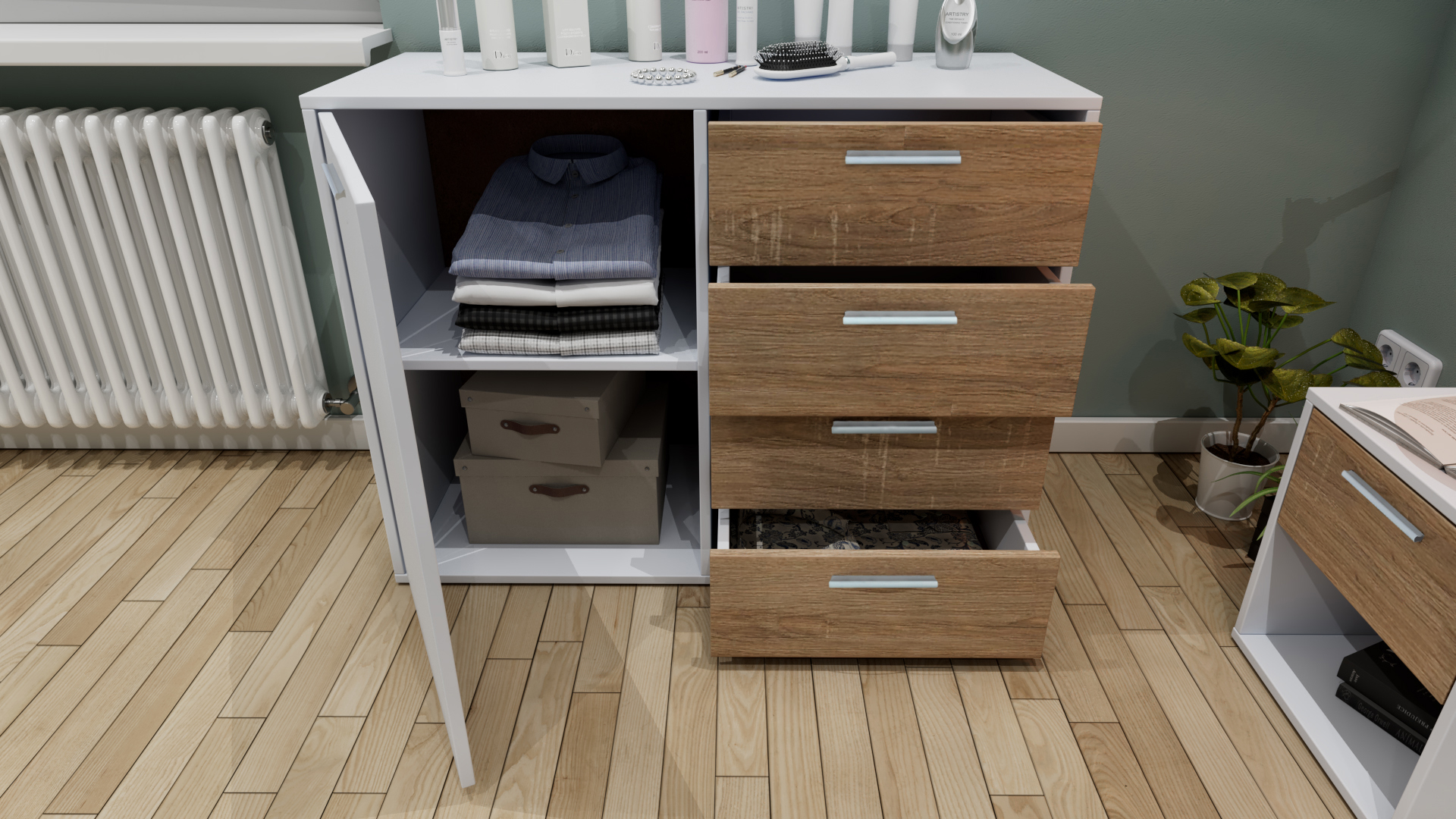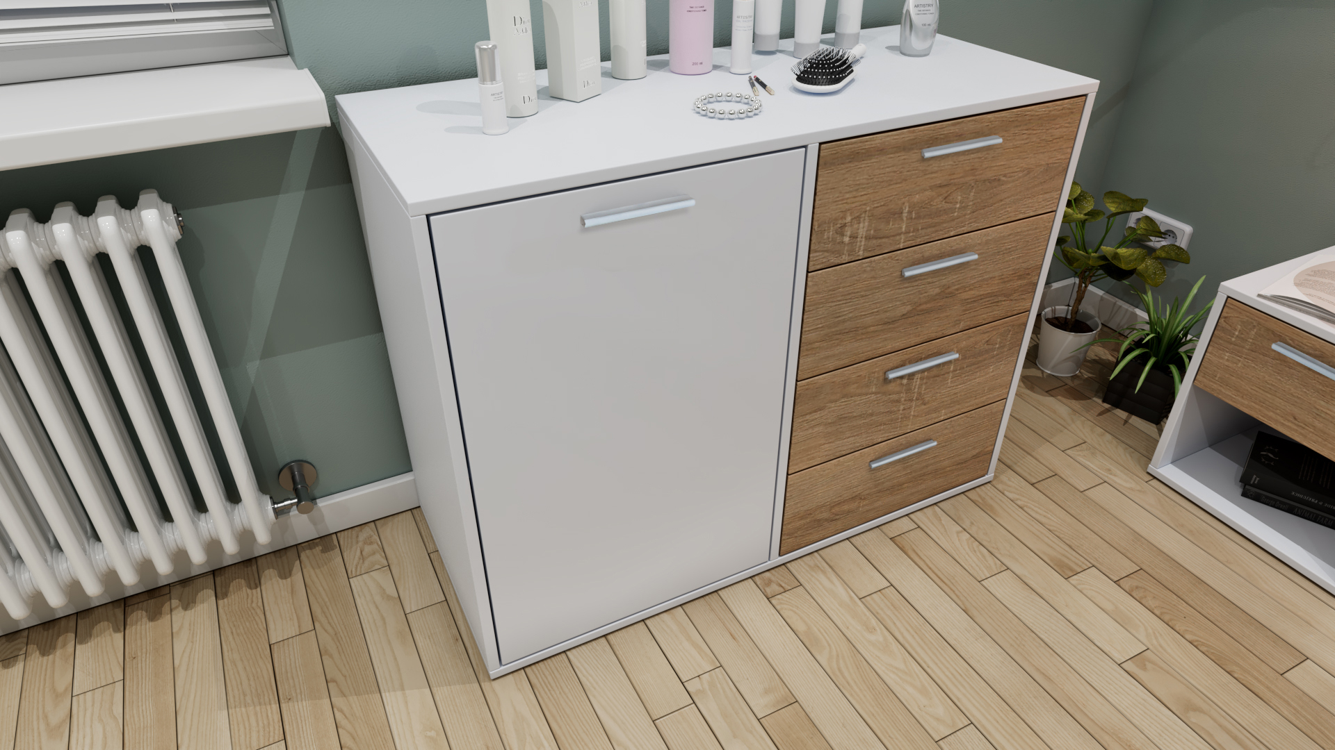 ⭐ Предимства: ✓ 4 чекмеджета ✓ затворен шкаф ✓ компактен и практичен ✓ модерен декор ✓ качествена изработка ✓ 16 мм ПДЧ