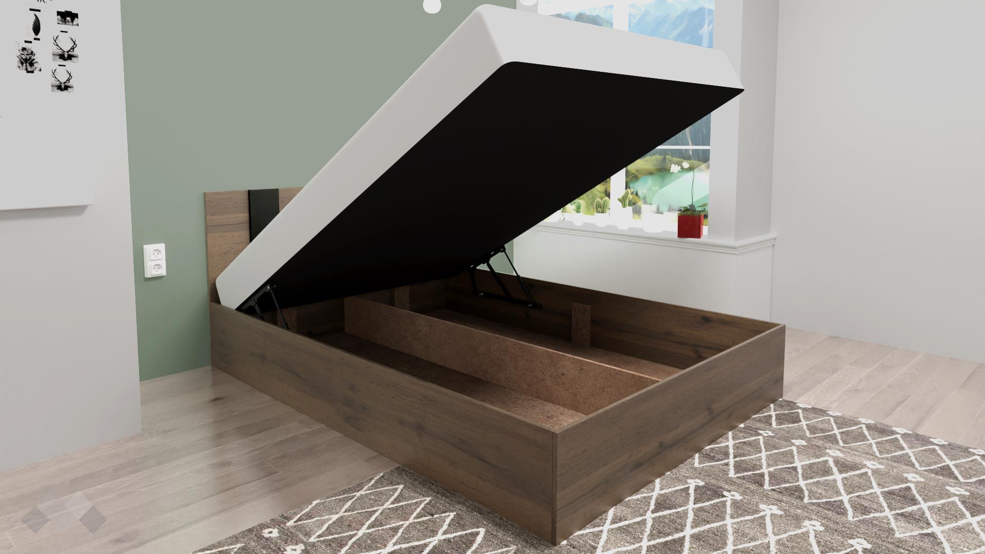 Спалнята е с включен механизъм за повдигане на матрака, за да използваш пространството под матрака като допълнително място за съхранение.