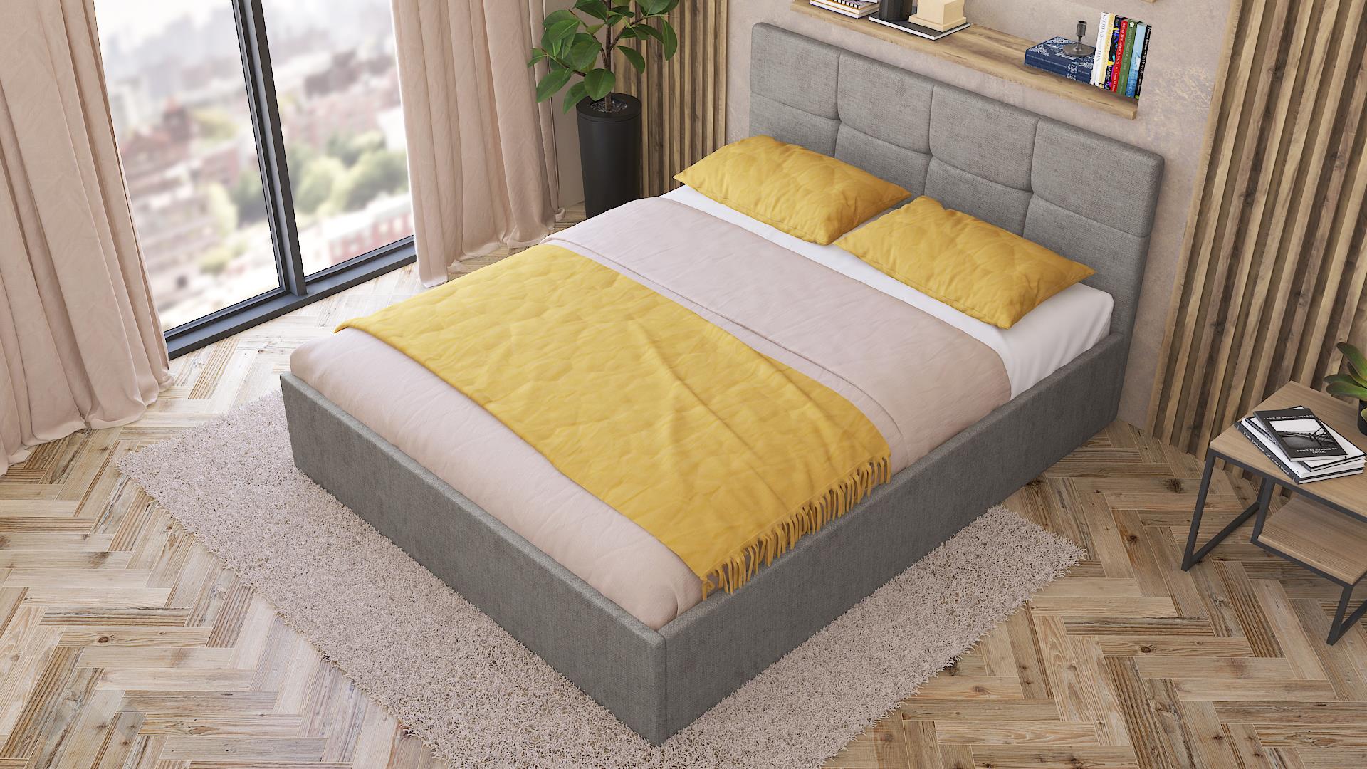 Тапицирана спалня Камил е с идеалните размери – подходяща е за матрак с размер 160/200 см. С повдигането на матрака пък се открива широко пространство, готово да побере всички възглавници и завивки, на които все не се намира място. Допълнителният делител на подматрачното пространство прави организацията на вещите още по-лесна.