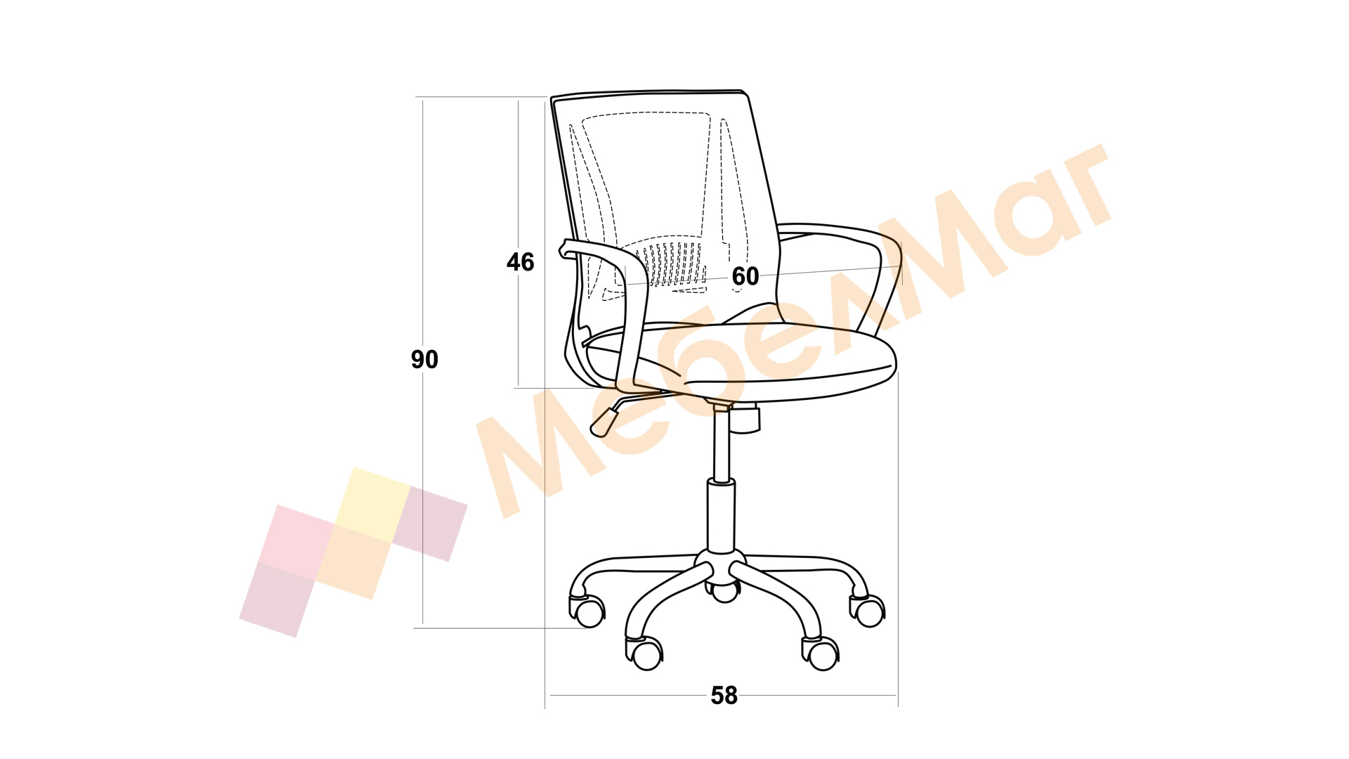 Д: 58см.  Ш: 60 см. В: 90 см.