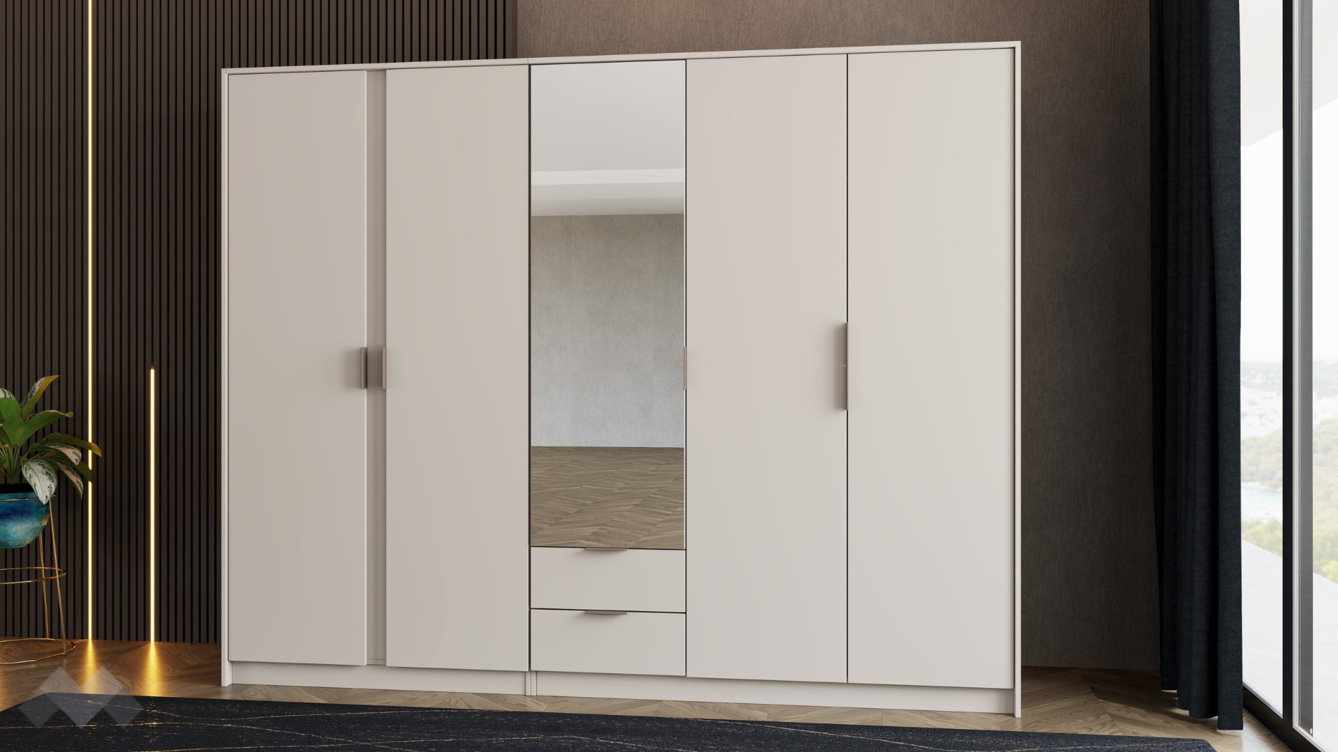 Вграденото огледало е не само прекрасен визуален акцент – отразява светлината, придава простор и добавя практичност към гардероба, то е и удобство, което ти дава възможност да провериш визията си преди излизане.