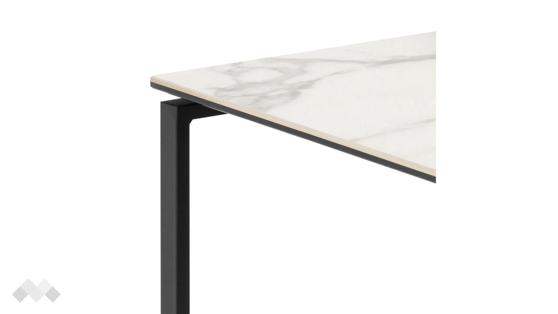 Основата от стомана осигурява стабилност и издръжливост, а повърхността на масите е устойчива на топлина и надраскване, което ги прави идеални за ежедневна употреба.