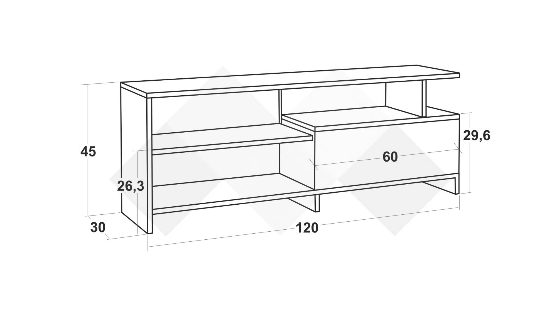 На твое разположение са два рафта, затворен шкаф и удобен плот, на който можеш да поставиш своя телевизор. Рафтовете ти предоставят достатъчно пространство, където да поставиш цялата си съпътстваща техника като ТВ приемници, конзоли и други. В затворения шкаф можеш да организираш вещите, които искаш да останат скрити, или техника, която не използваш толкова често, но в същото време ще ти е винаги под ръка.